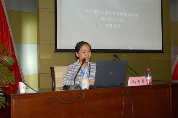 10月16日上午,在第十三次中南·华南地区2010年英语专业教学协作会暨学术研讨会上,华中师范大学外语学院向宗平副教授在圆形报告厅作了题为“英语教育专业学术研究型教学探索”的主题发言。会议由华中科技大学外国语学院副院长许明武教授主持。
