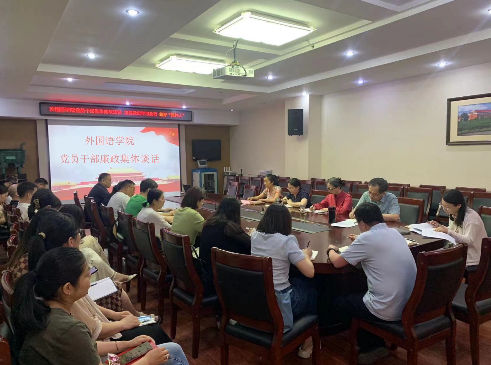 为深入推进党纪学习教育,学习贯彻习近平总书记关于全面加强党的纪律建设的重要论述,6月11日,我院党委书记许荣梅对学院处科级干部、系(教研室、中心)负责人、教工党支部书记、支委及我院机关工作人员开展廉政集体谈话。