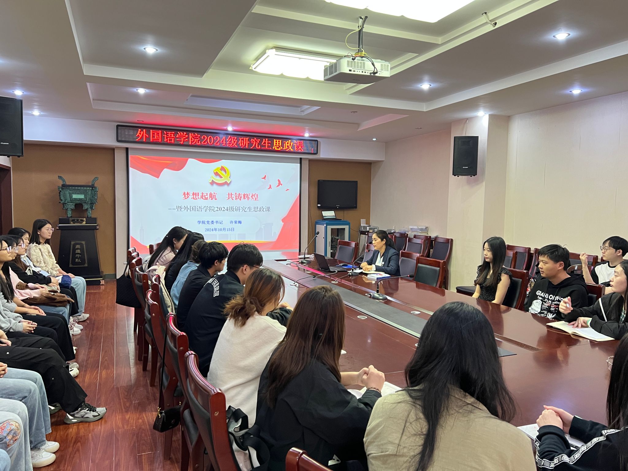 为落实立德树人根本任务,促进学生健康成长成才。10月15日下午,我院党委书记许荣梅在文综楼311会议室为我院2024级全体研究生讲授题为“梦想起航 共铸辉煌”思政课。