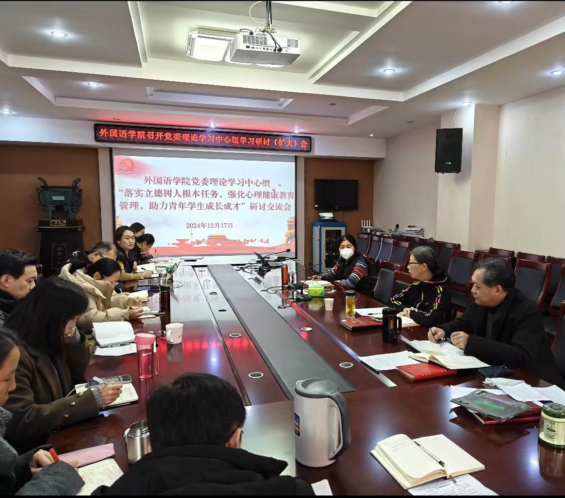 12月17日上午,我院党委理论学习中心组在文综楼311会议室开展“落实立德树人根本任务,强化心理健康教育管理,助力青年学生成长成才”研讨交流会。学院领导班子、党委委员、科级干部、系(教研室)负责人、党支部书记、全体辅导员、班主任(学业导师)、研究生导师及党外人士代表参会。会议由我院党委书记许荣梅主持。
