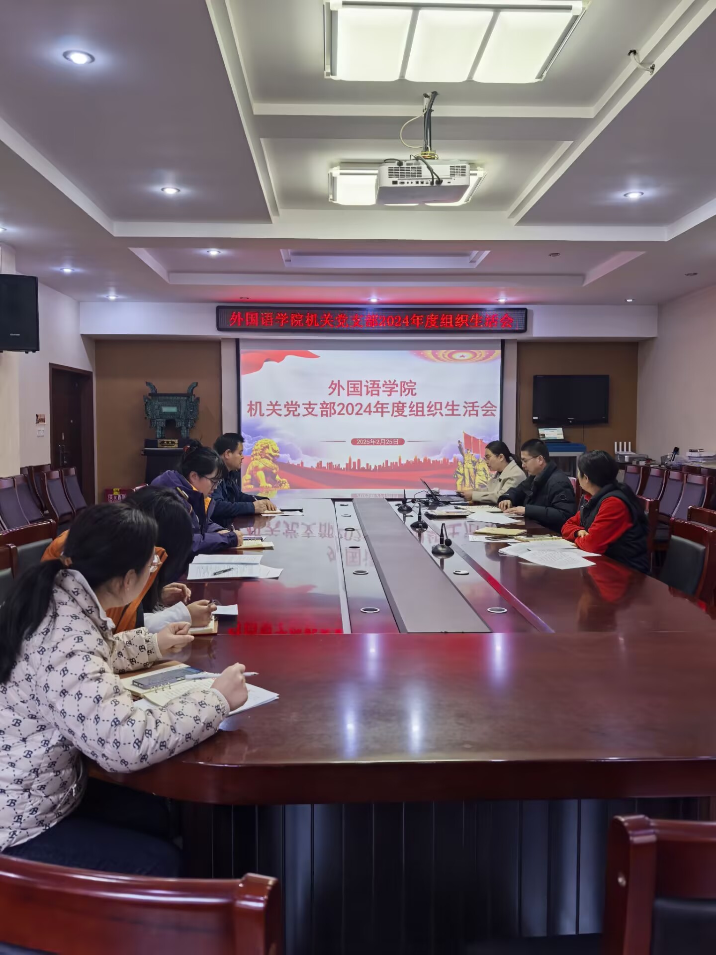 2月25日下午,我院机关党支部在文综楼311会议室召开2024年度组织生活会,会议以“深入学习贯彻习近平新时代中国特色社会主义思想,巩固深化党纪学习教育成果,为学校‘双一流’建设提供坚强纪律保障”为主题,对标全面从严治党要求,查摆问题、剖析根源、明确整改方向,机关党支部书记陈蕊主持会议,包括学院党委书记许荣梅和党委副书记何军在内的全体党员参会。