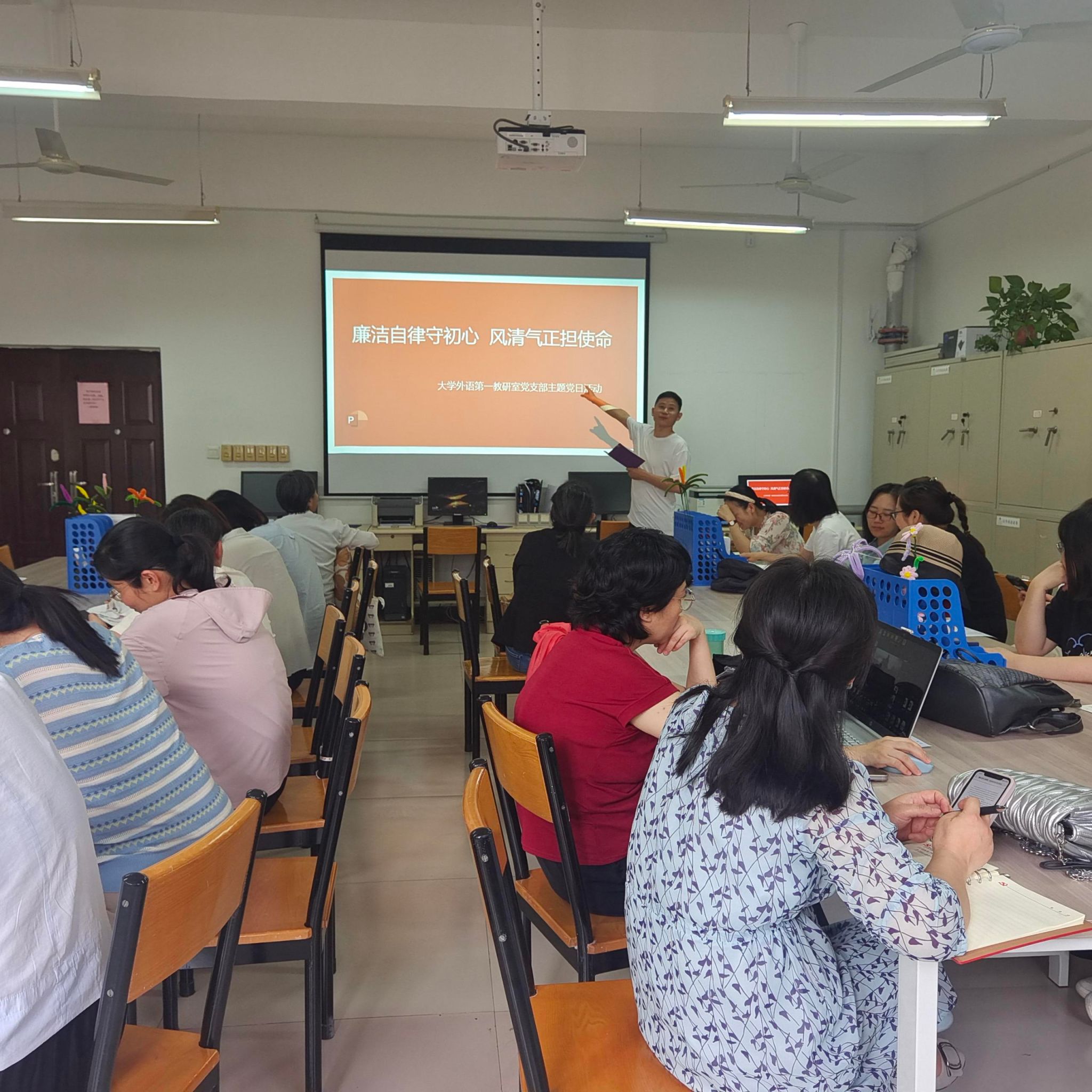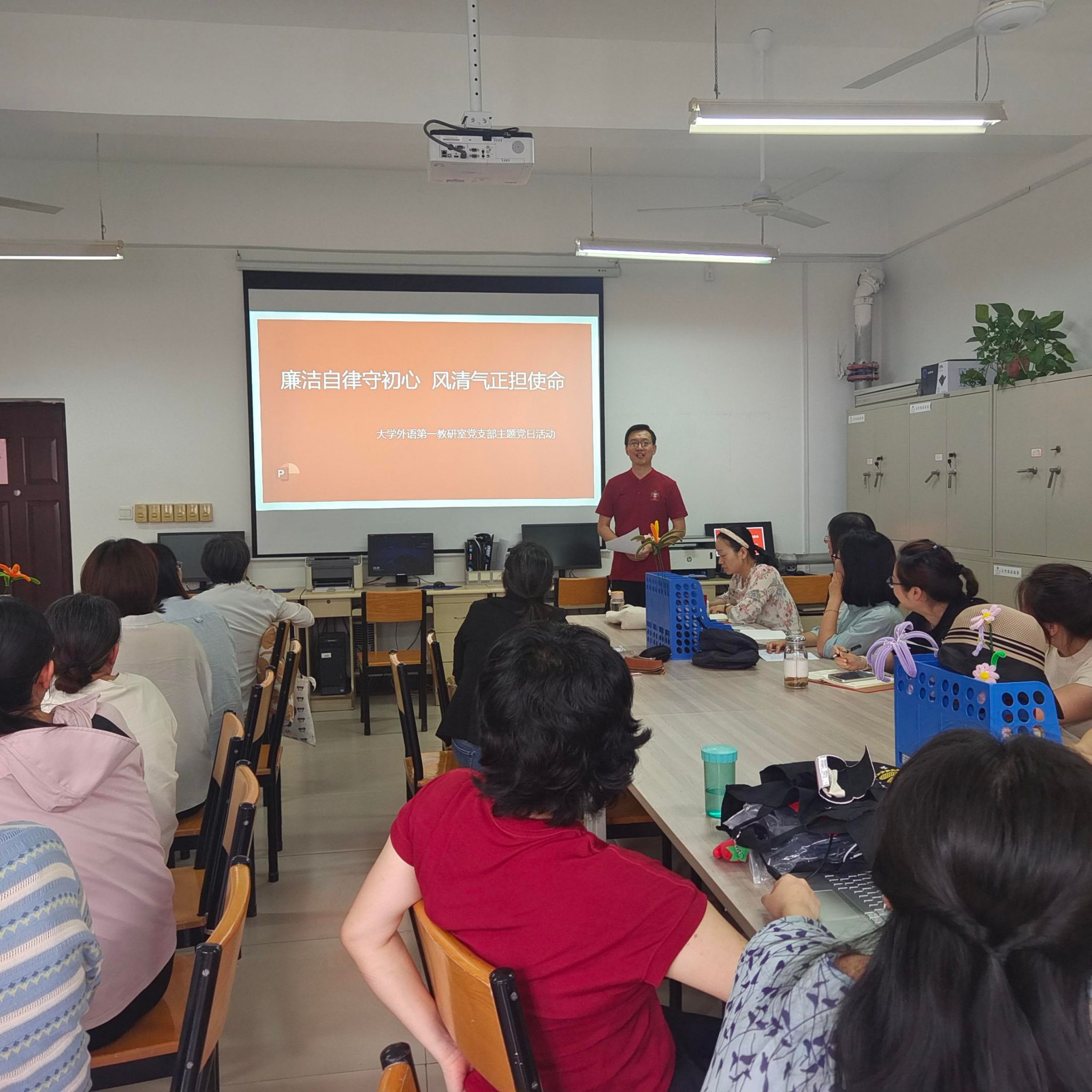 为了深入学习贯彻中央八项规定精神,增强党员廉洁自律意识,5月13日下午,大学外语第一教研室党支部开展了“廉洁自律守初心,风清气正担使命”主题演讲党日活动。郑忠耀院长和支部全体党员参加了活动。