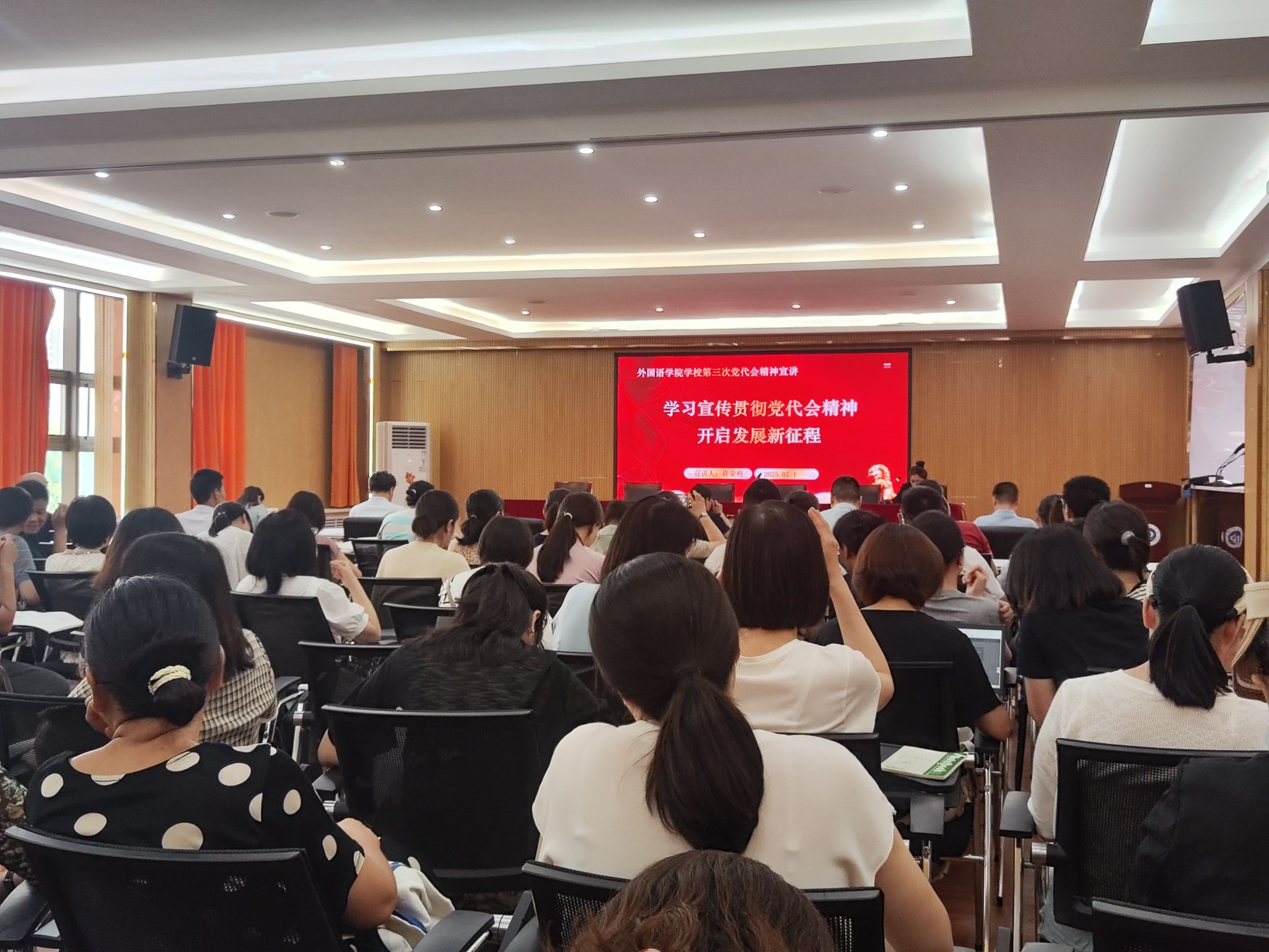 许荣梅强调,全体教职工要深刻领会党代会精神,切实把思想和行动统一到学校党委的决策部署上来。结合学院实际,她提出四点要求:一是坚持党建引领,落实立德树人根本任务,确保党代会精神在学院落地见效;二是强化内涵建设,优化学科布局,提升教学科研水平,增强学院核心竞争力;三是深化“三全育人”,培养具有家国情怀和国际视野的高素质外语人才;四是抢抓发展机遇,主动担当作为,以更高标准、更实作风推动学院事业高质量发展。