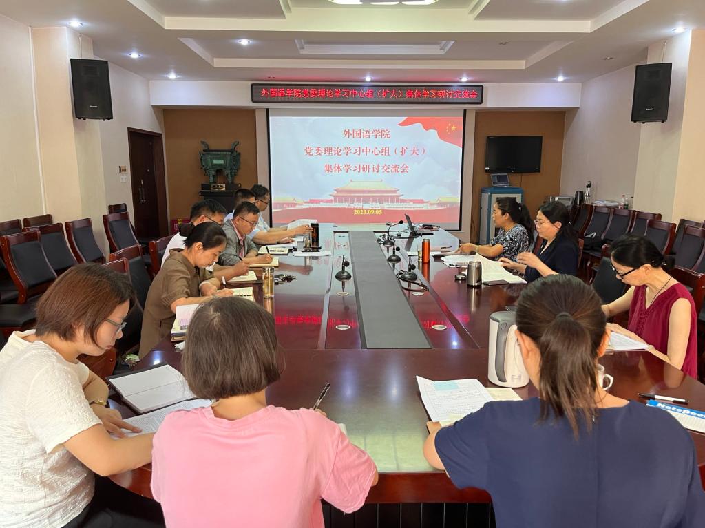 按照主题教育安排,我院于9月5日上午在文综楼311会议室开展党委理论学习中心组(扩大)集体学习研讨交流。我院全体院领导、党委委员、党支部书记参会,会议由我院党委书记许荣梅主持。