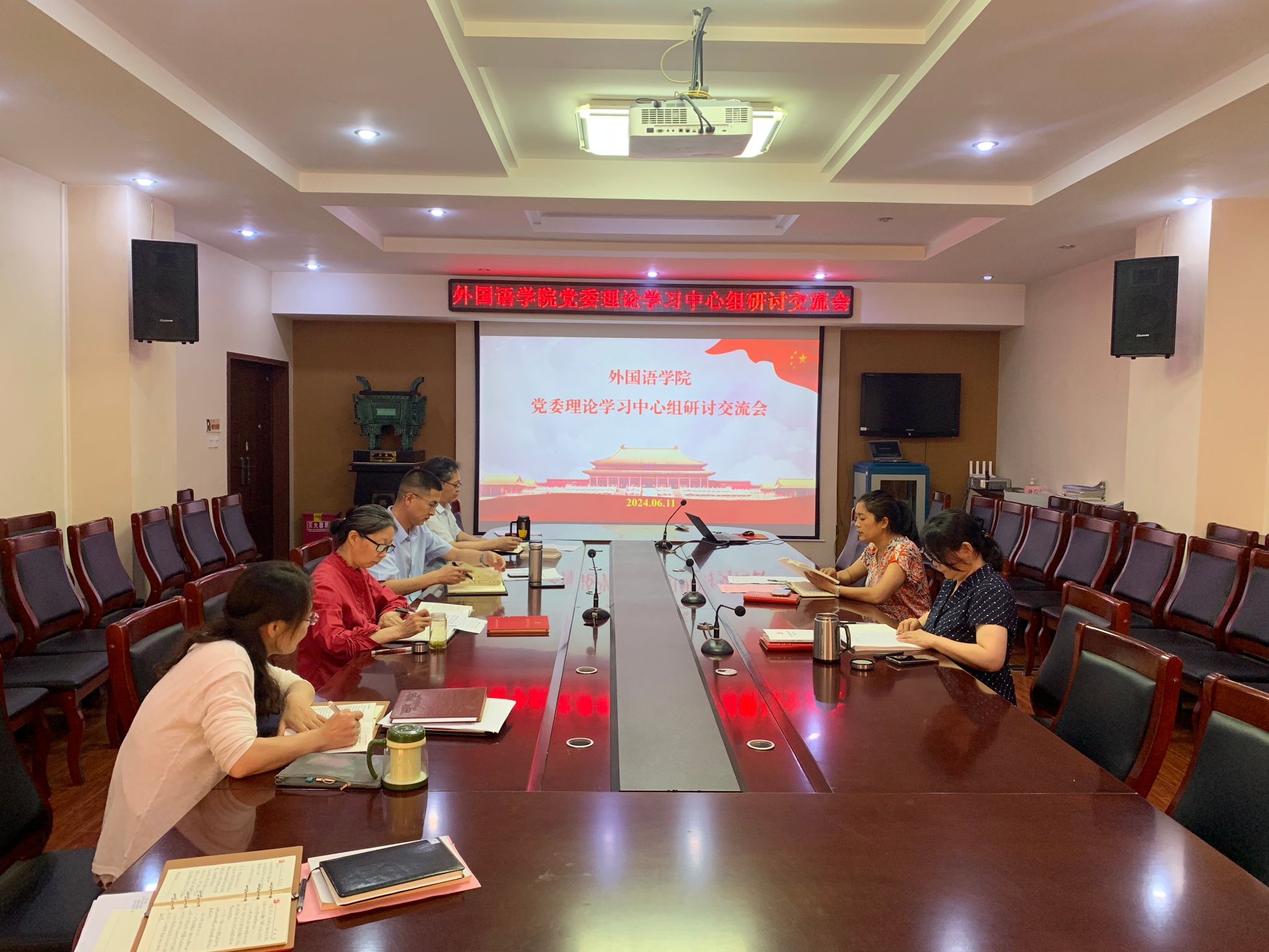6月11日,我院党委理论学习中心组在文综楼311会议室开展党纪学习教育专题学习,围绕党的“工作纪律、生活纪律”进行研讨交流。会议由院党委书记许荣梅主持,学院全体院领导、党委委员参加会议。