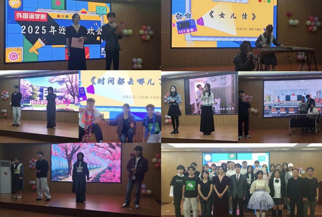此次迎新联欢会以开场舞《Shake It》点燃全场,同学们以动感的节奏、活力的舞姿,瞬间唤醒了现场的热情。紧随其后的歌曲《只对你有感觉》,张志、曹路的默契合唱将青涩的青春情愫娓娓道来;舞蹈《家有儿女》则以复刻经典的创意编排,让观众在熟悉的旋律中重温温暖的生活烟火,引发全场共鸣。从抒情的《慢慢喜欢你》到热烈的舞蹈《Fervant》,节目风格的切换让舞台张力持续拉满。小品《时间都去哪了》以细腻的表演戳中“时间流逝”的共鸣点,引得台下掌声与感慨交织;中场游戏环节更是打破台上台下的界限,师生互动的欢笑让晚会氛围愈发温馨。下半场的节目同样亮点频现:古筝弹唱《女儿情》以古典韵律传递婉转情思,武术《棍术腿法展示》则以刚劲的招式彰显青春的力量;舞蹈《寄明月+BLACKPINK Bliss》融合国风与韩流元素,郭晨婧、高淼然的演绎兼具柔美与飒爽;歌曲《遇见+Love Yourself》的治愈旋律,小品《如此家访》的幽默反转让现场笑声与掌声此起彼伏。最后,迎新联欢会在合唱《New Boy》的轻快节奏中落下帷幕,熟悉的歌词里,是新生们对大学生活的憧憬,也是全体外院人对青春与未来的共同期许。