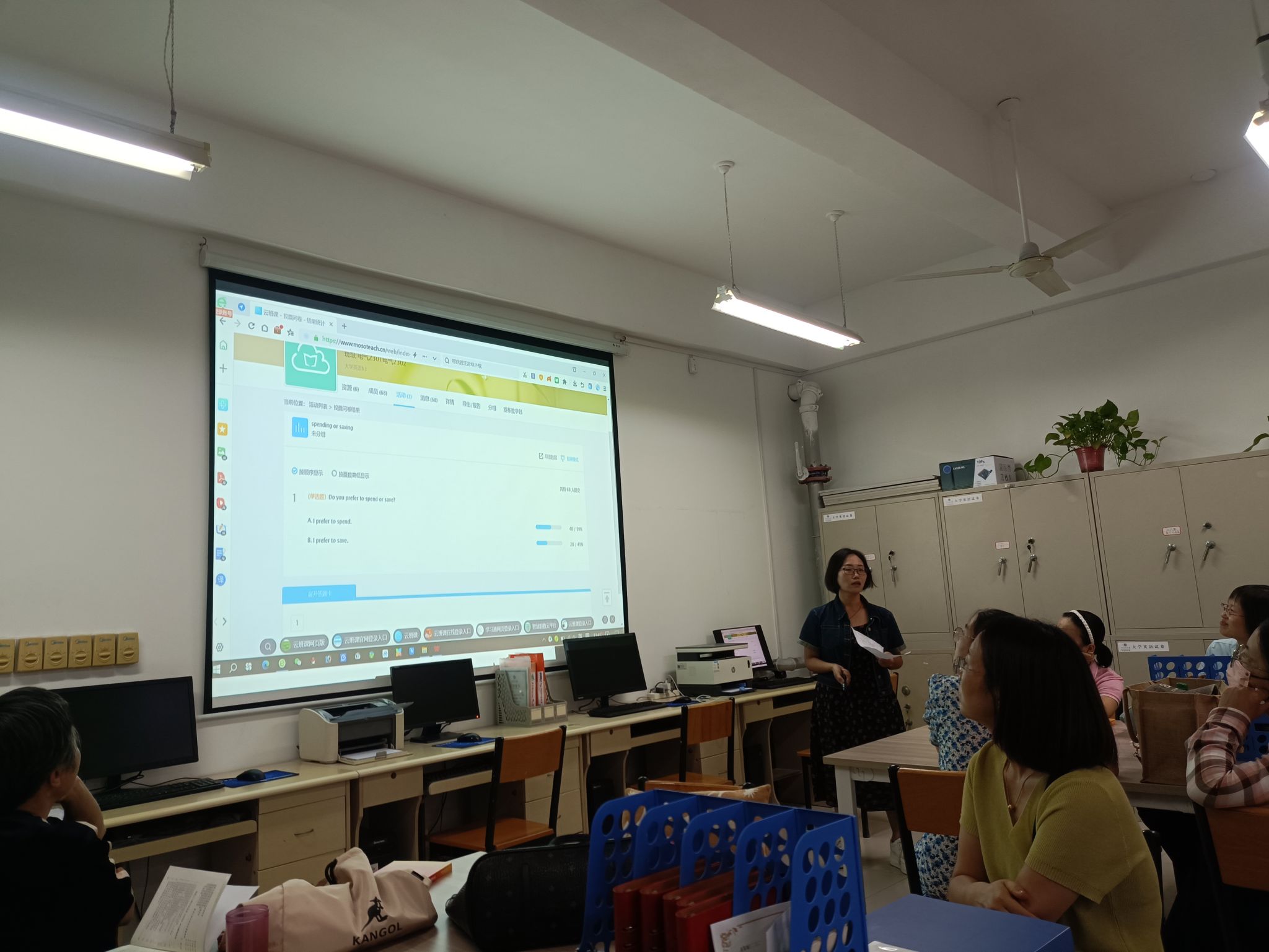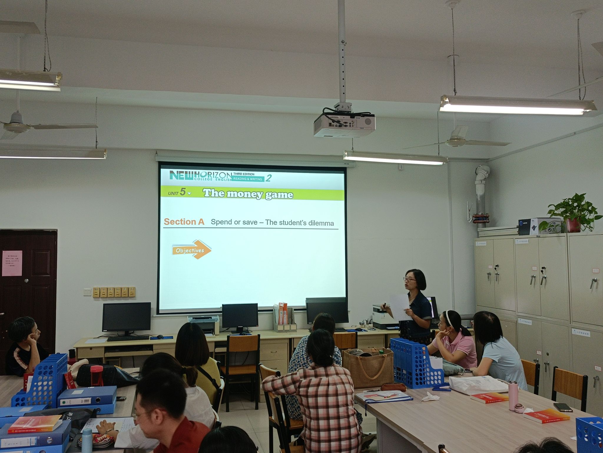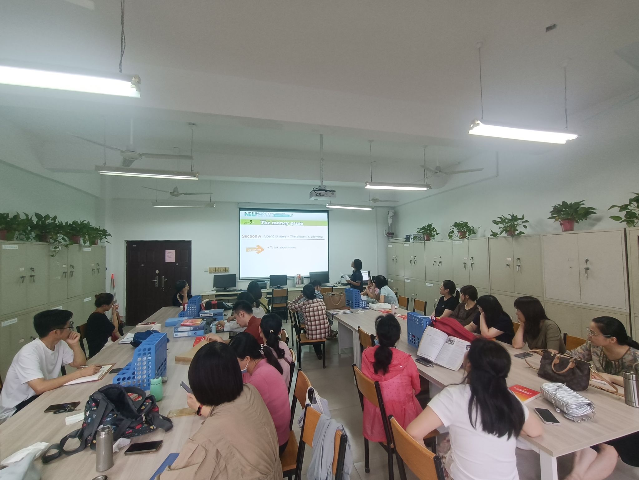 此次活动由教研室主任余阳主持,第五单元备课团队主讲。主讲人王伟老师围绕单元主题内容Spend or save–The student’s dilemma,从教学目标、教学方法、教学设计、课堂思政、教学反思等方面进行了交流分享。活动中,老师们热烈讨论,对教学内容进行深入分析和探讨,从课堂导入、师生互动、知识讲解,到技能训练、巩固拓展和作业布置,对教学的每个环节都进行了补充与完善,提出了宝贵的建议,以求设计出更科学、合理、完善的教学方案,从而提升教学质量。