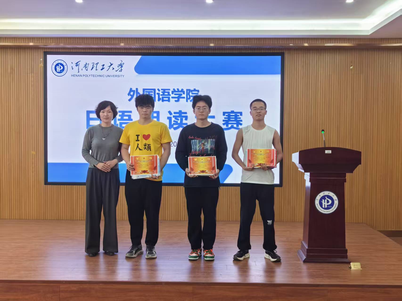 经过激烈角逐,李晨昕同学凭借出色的语音表现力和感染力摘得特等奖,张圆英同学荣获一等奖,另有2名同学获得二等奖、3名同学获得三等奖。颁奖环节中,评委老师为获奖选手颁发奖状及奖品,并勉励大家继续保持对日语学习的热情,在未来的学习中再创佳绩。