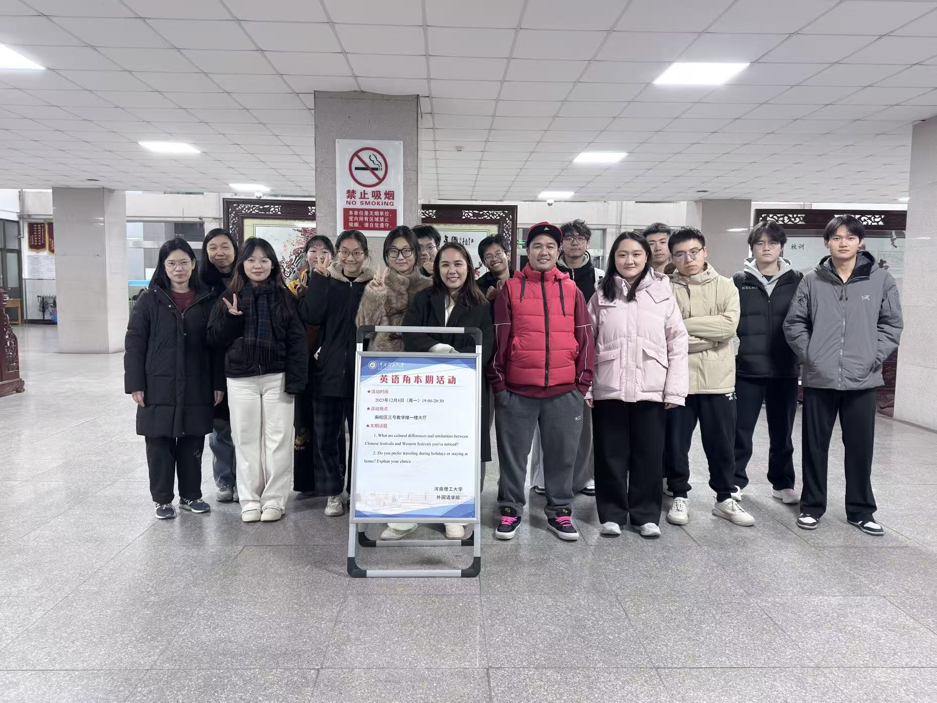 为促进跨文化交流、提升学生英语表达能力,我院于12月8日晚在南校区三号教学楼一楼大厅成功举办了本学期最后一次英语角活动,本次活动以“Festivals and Holiday Choices: East Meets West”为主题吸引了众多师生参与,其中包括两位外教——来自菲律宾的Marc老师和Mary老师,现场气氛热烈,讨论深入。