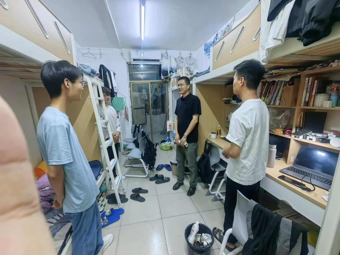 在查寝过程中,党委副书记何军与同学们进行了面对面的交流,为学生送去关心和问候,提醒同学们保持寝室卫生,养成良好的生活习惯,强调了校园安全、防火、防盗、防诈骗等安全教育的重要性。各年级辅导员详细了解学生暑假生活和社会实践情况,重点清查了安全返校人数,并强调同学们在新学期要调整好心态,以全新的姿态、全身心投入到学习中,全面提升专业能力和综合素质,同时针对宿舍中存在的问题,提出了整改建议。