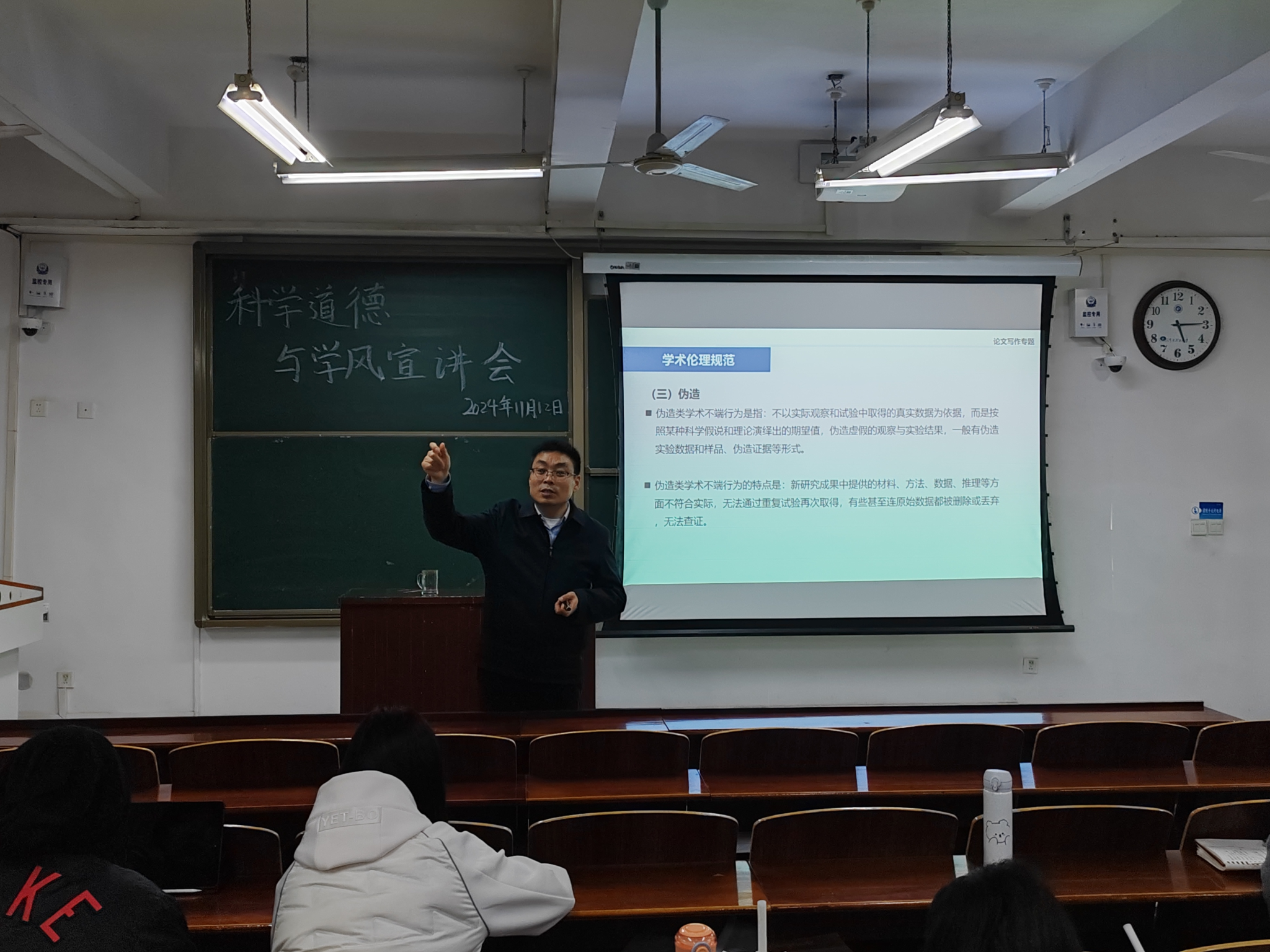 为加强学院研究生的科学道德和学术风尚,提高研究生学术水平,11月12日下午我院日语系系主任段继绪应邀在文综楼406教室做了题为“严守学术规范 成就学术梦想”的宣讲报告。我院2024级全体研究生参加了此次报告会。