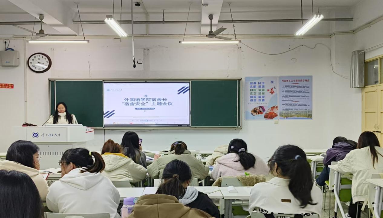 为给同学们营造一个安全、舒适、和谐的居住环境。11月18日,我院组织召开了一场意义重大的宿舍长“宿舍安全”主题会议,全体宿舍长参会。