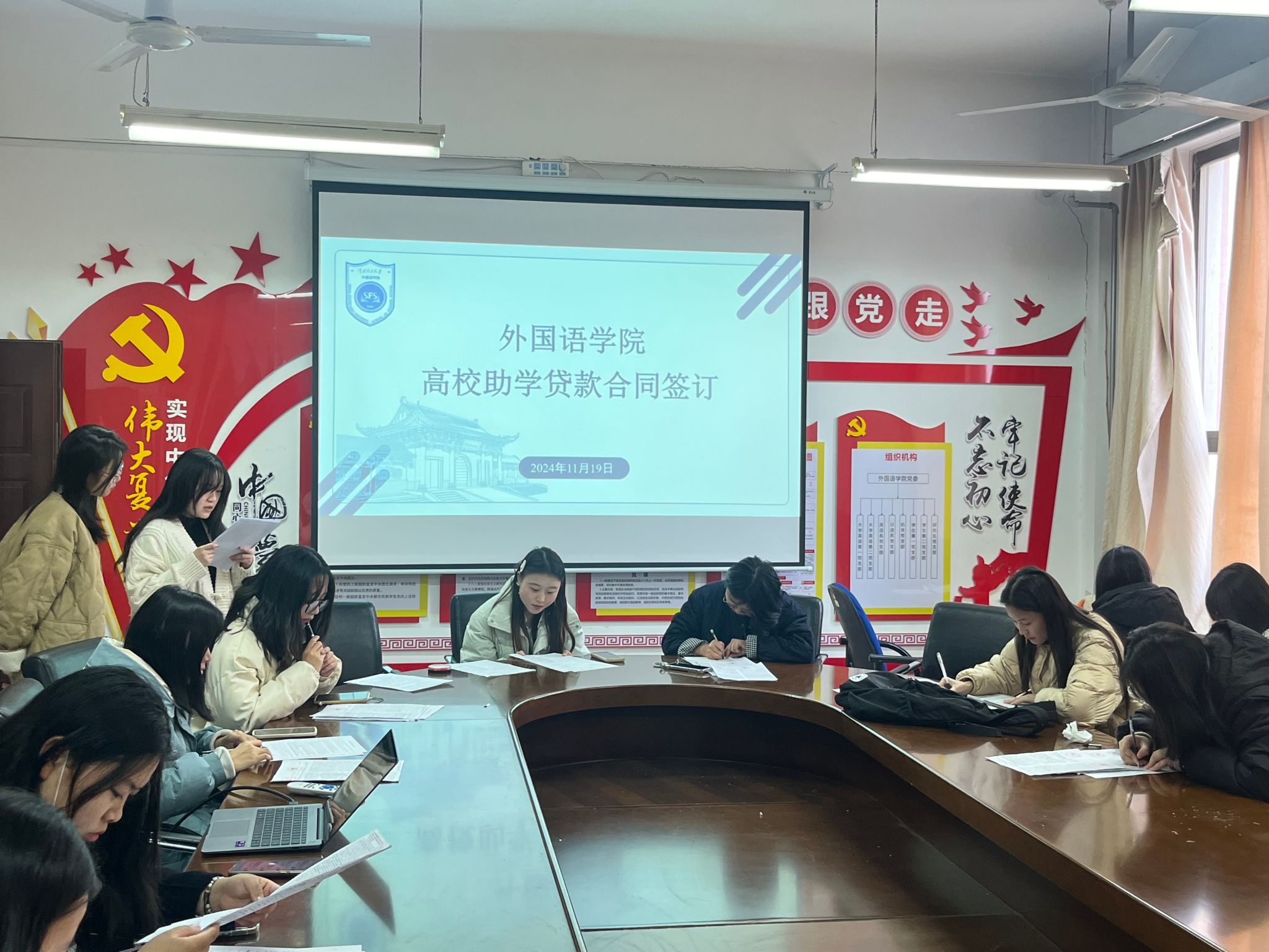为帮助经济困难的学生顺利完成学业,切实做好我院2023-2024年高校国家助学贷款工作,11月19日,我院在318会议室举行了外国语学院高校助学贷款合同签订仪式。仪式由我院贷款专员黄冰妍主持,我院15名高校国家助学贷款学生参加仪式。