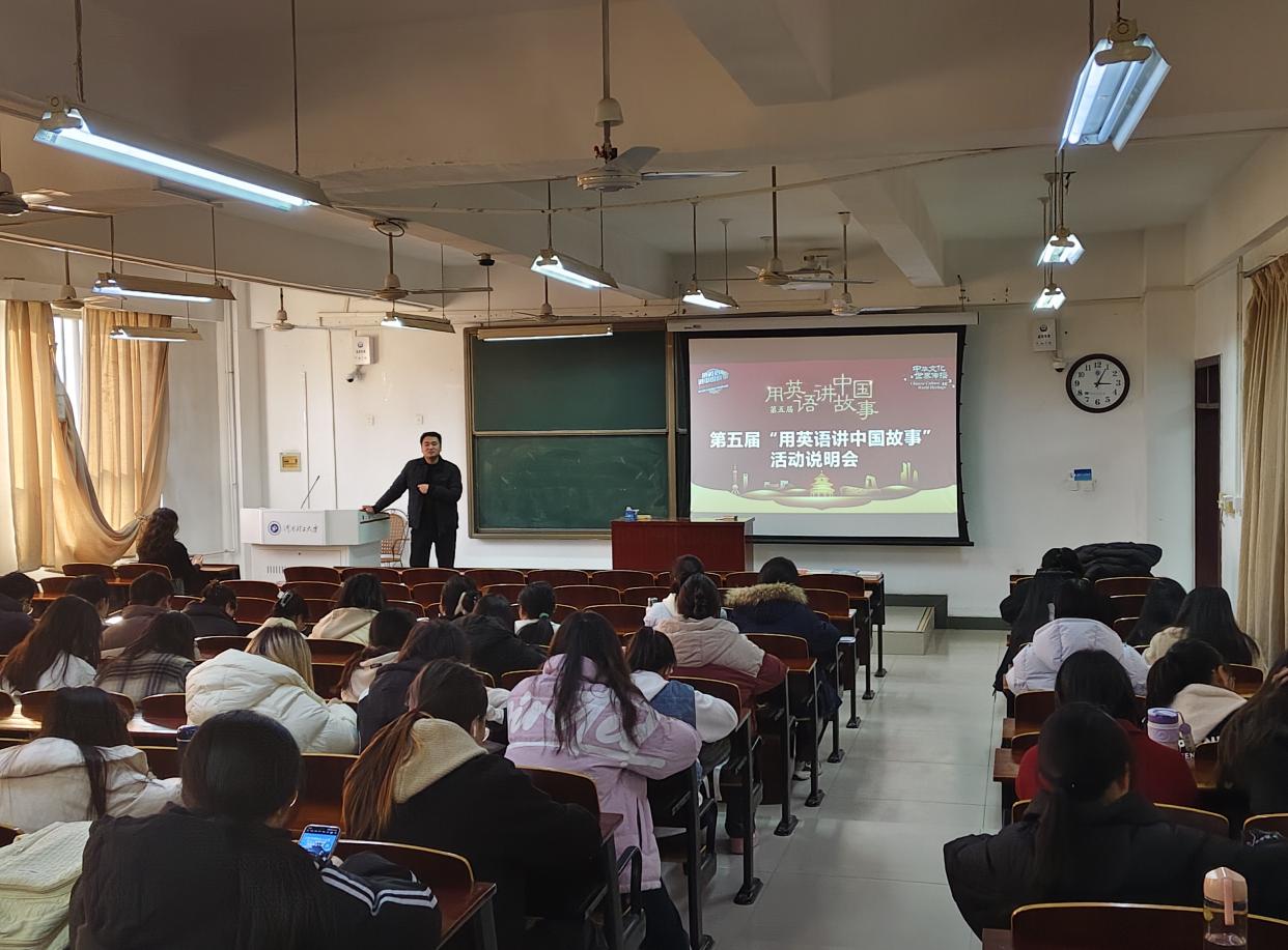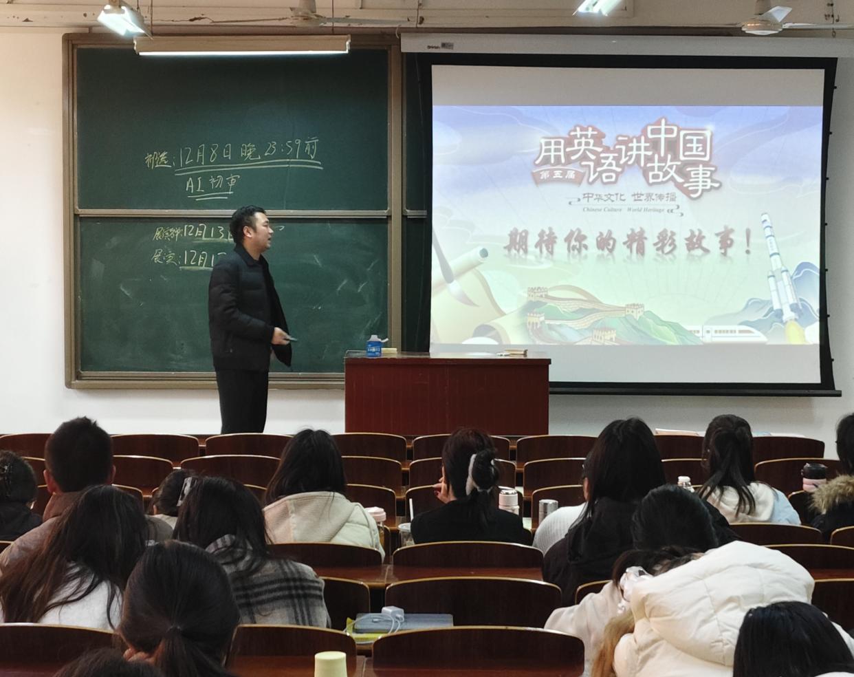 12月3日下午,我院第五届“用英语讲中国故事”活动宣讲会于文综楼307顺利举行。本次会议由新航道教育集团禹权恒主讲,来自2022、2023、2024级共120名学生参与了本次说明会。