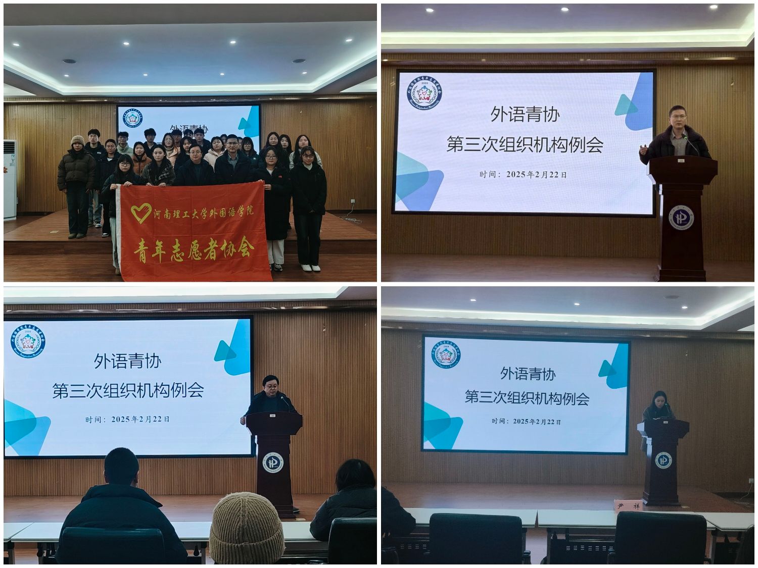 根据《外国语学院青年志愿者协会章程》要求和实际需要,我院青协召开了本学期第一次组织机构例会。会议伊始,各部门部长依次进行发言,对本部门上学期的工作进行了全面汇报。部长们梳理了部门上学年的工作成果,认真剖析了工作推进过程中遇到的一些难题,如部分成员对工作任务的重视程度不足,出现遗忘或执行错误等。理事会成员紧接着就各自分管部门的工作情况进行了全面总结。他们充分肯定了大家的辛勤付出与贡献。同时,理事会成员也指出了在部门管理与日常工作中存在的不足之处,提出了改进建议。此外,会长还对各部门的工作进行了合理调整,增设了“院楼维洁”这一长期志愿活动项目,明确了近期活动的要求。随后,尹祥对协会上学期所取得的成果给予了充分肯定与赞扬,并强调,在新的学期,外语青协要勇于创新、继往开来。最后,院党委副书记何军发表重要讲话。他指出,外语青协在新的学期应当树立明确的目标,开拓创新。还要强化组织意识,在响应校青协号召的同时,积极服务学院中心工作。