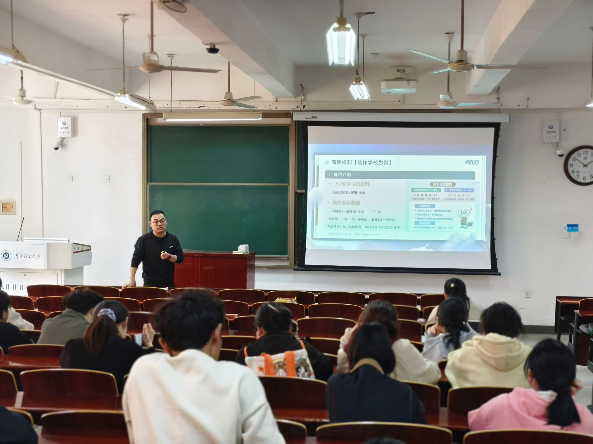 为进一步推进我院毕业生就业工作,拓宽毕业生就业渠道,外国语学院于3月22日下午在文综楼307教室举办新东方焦作学校招聘宣讲会。本次宣讲面向2025届本科毕业生,现场气氛热烈。