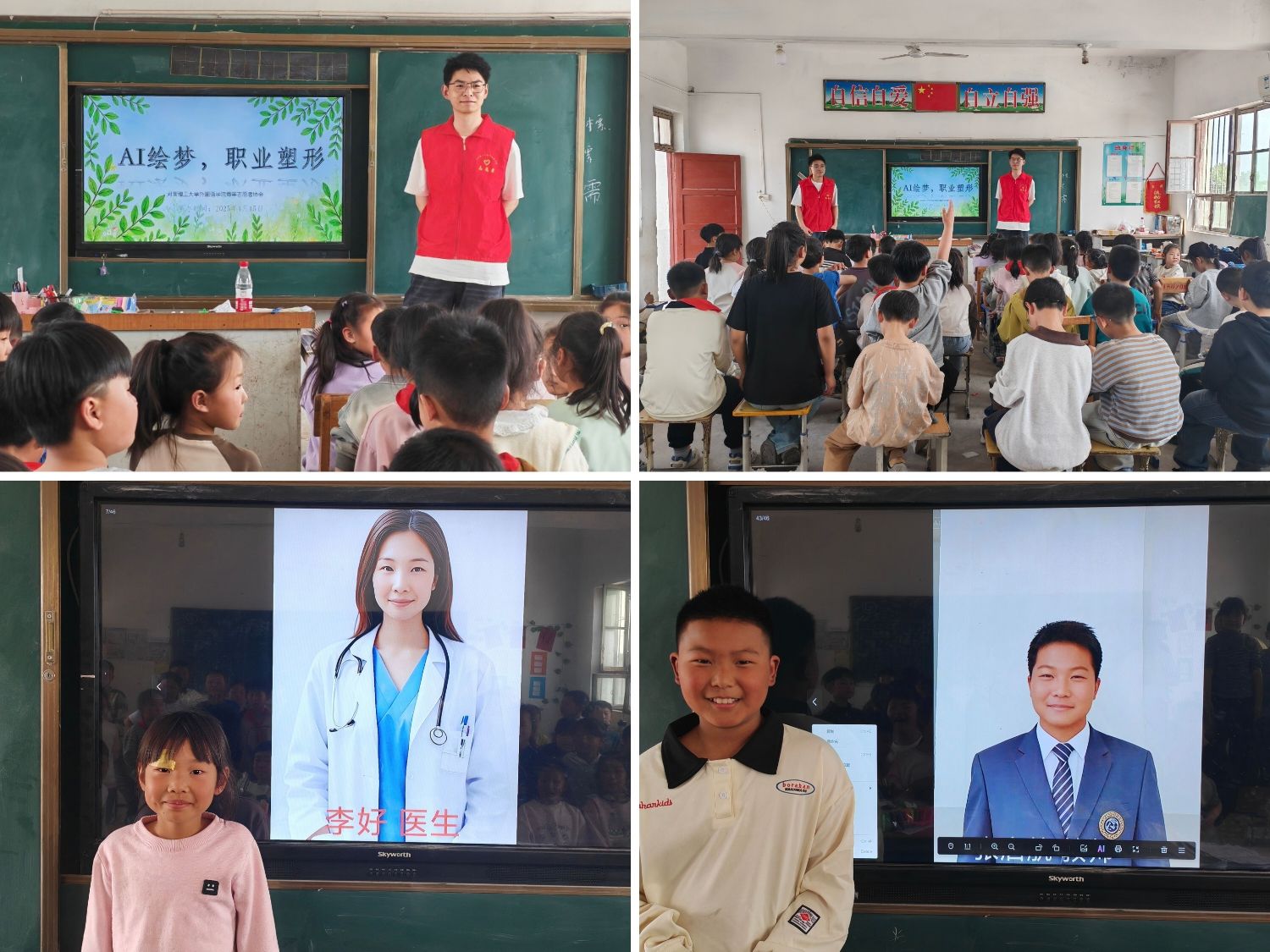 AI绘就梦想景,职业塑成未来途。为助力小学生探索职业理想,感受科技魅力,4月15日,我院青年志愿者协会于焦作市武陟县小董乡南耿小学开展了“AI绘梦,职业塑形”青年志愿服务活动。