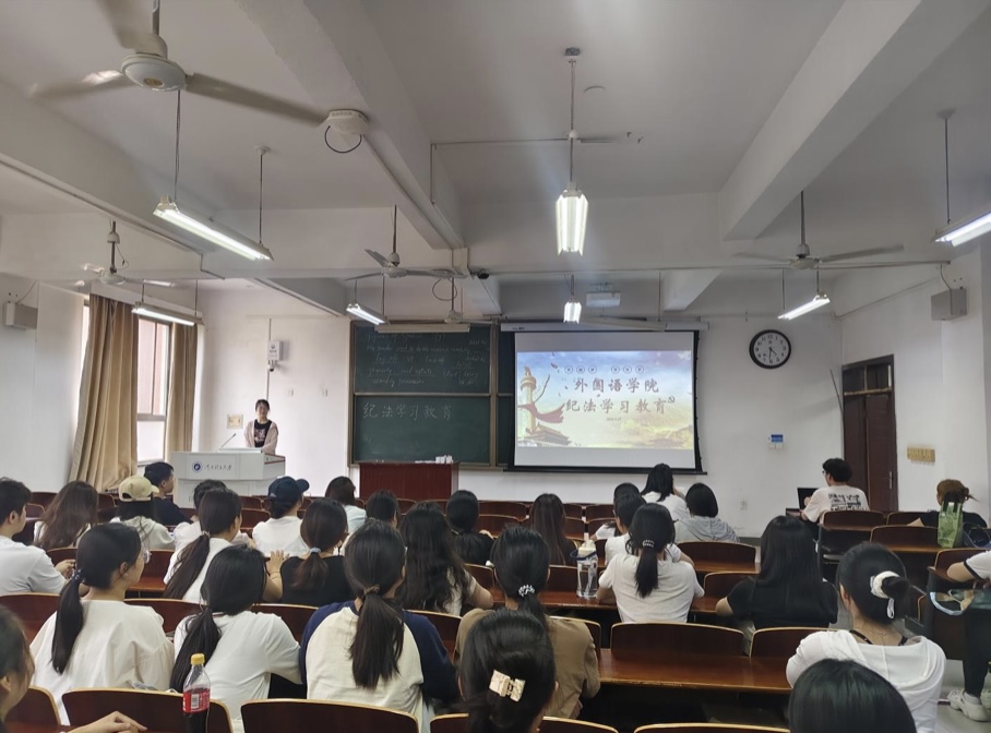 为增强团员青年纪法意识,5月26日,我院2024级全体学生齐聚文综楼306教室,开展纪法学习教育座谈会,本次座谈会由院团委副书记张钰晗主讲。