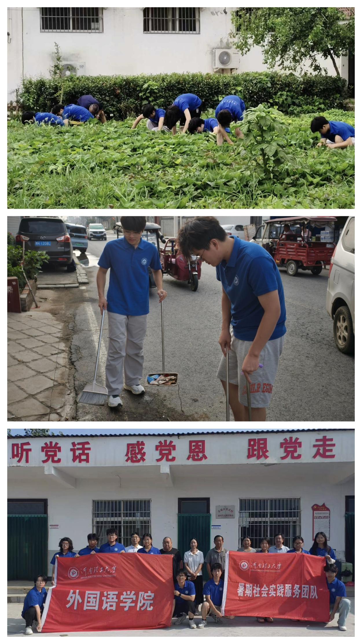 此次活动是我院落实学校“实践育人”理念的生动实践。队员们在田间劳作中体悟“庄稼一枝花,全靠肥当家”的农耕智慧,在村容整治中践行“洁净家园”的责任担当,既为张武村的夏日添了生机,更让青春力量扎根乡村沃土。作为外语学科师生,团队以“实干”为笔,将专业所学与乡村需求相连,不仅是对学校“把论文写在祖国大地上”号召的响应,更以实际行动为乡村振兴注入“外院动能”,让青年担当在田畴绿野间绽放芳华。