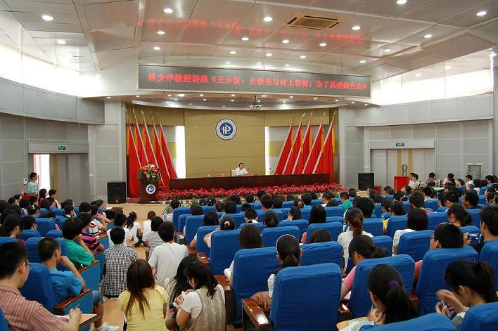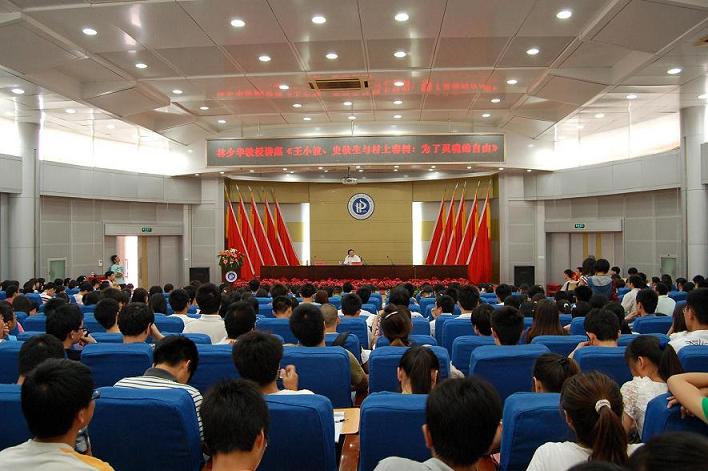 纵舟书海自有气度非凡,摒弃庸俗方得灵魂自由。5月9日晚,著名翻译家、学者林少华教授应邀莅临我校,于我校南校区一号综合楼圆形报告厅举办了一场题为《王小波、史铁生与村上春树:为了灵魂的自由》的讲座。外国语学院副院长李红主持,我校数百名师生聆听了此场报告会。现场人满为患,气氛热烈。