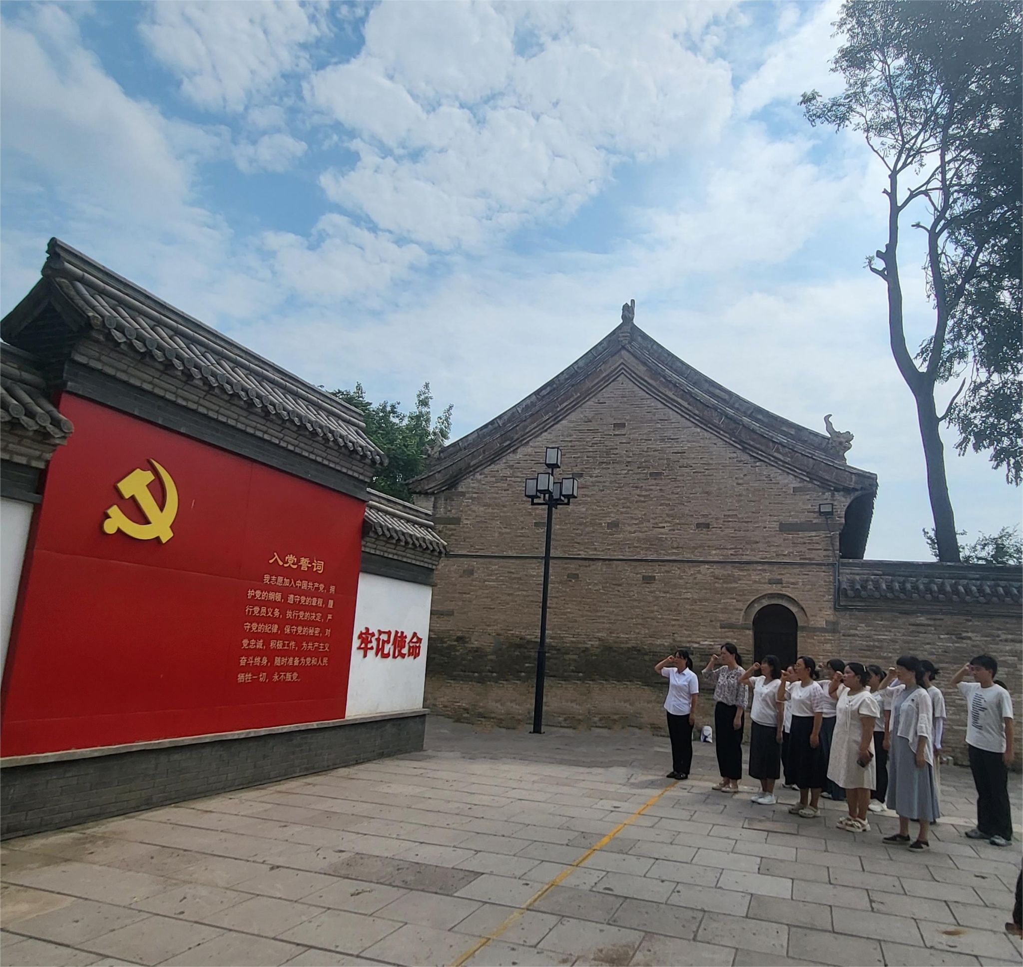 随后,党员们还参观了王氏宗祠、怀商文化展示馆等文化遗址,进一步了解了寨卜昌村丰富的历史文化底蕴。这些古迹不仅见证了村庄的繁荣与变迁,也承载着深厚的革命记忆和爱国情怀,为双方党员们上了一堂生动的历史课。活动最后,全体党员师生在晋冀鲁豫野战军第九纵队纪念馆前重温了入党誓词。