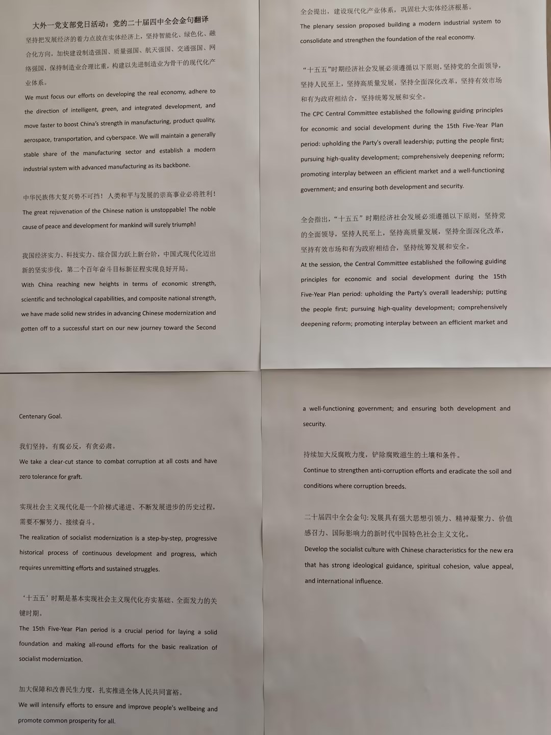 10月28日下午,大学外语第一教研室党支部开展了“党的二十届四中全会金句翻译”主题党日活动,支部全体党员参加了本次活动。