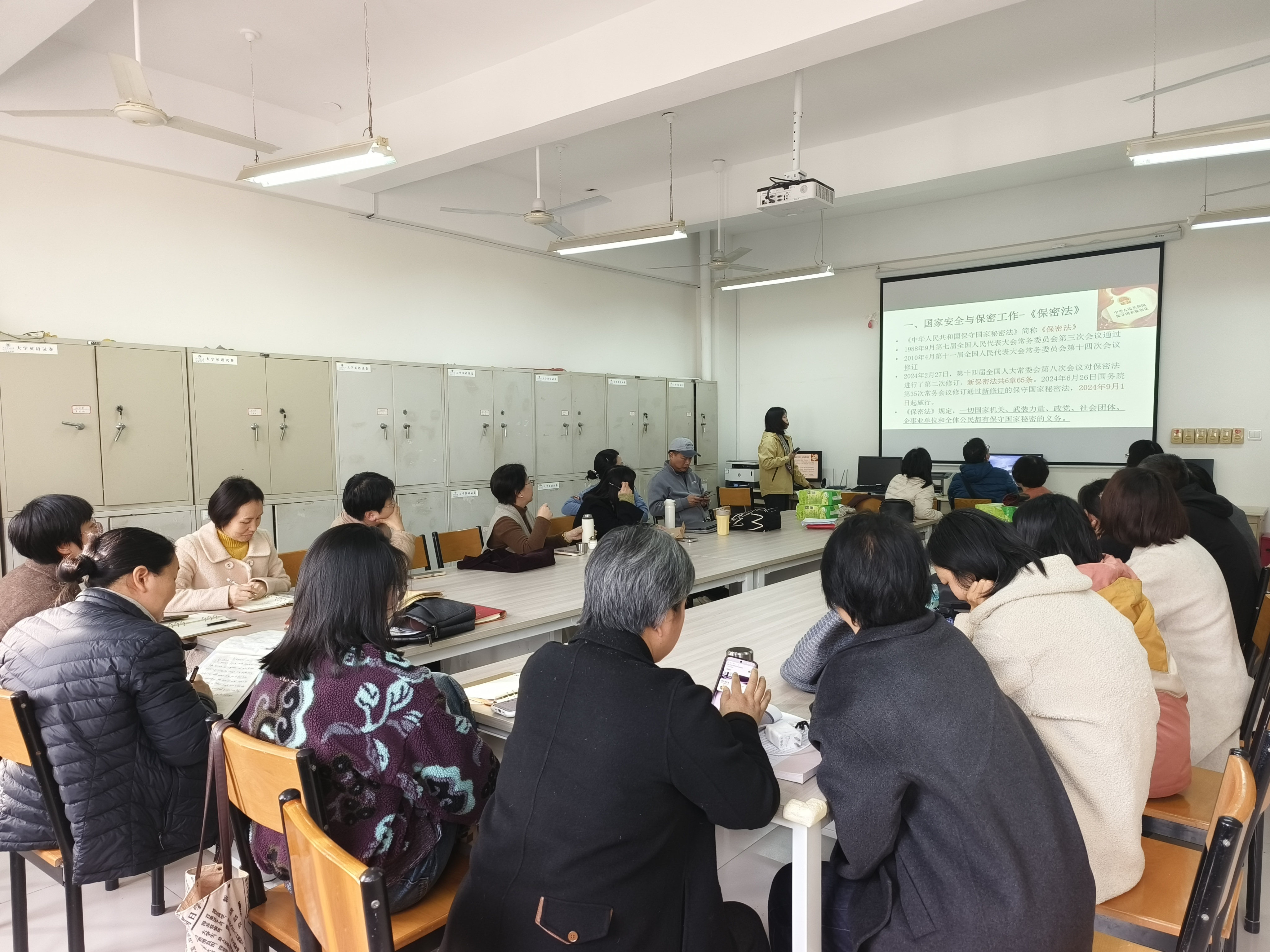 支部书记首先带领大家学习《中华人民共和国保守国家秘密法》,结合高校工作实际与典型保密违规案例,剖析泄露国家秘密的风险与危害——从“科研数据涉密管理”到“学生信息保护红线”,以具体场景帮助党员直观理解保密法的应用边界,明确“涉密信息不上网、敏感内容不外露”的工作准则。
