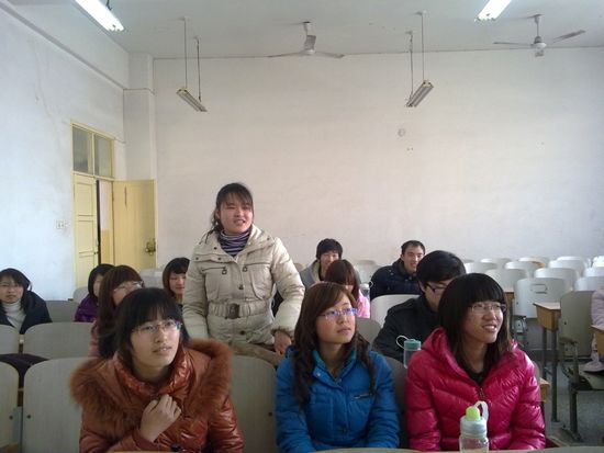 09级英语2班同学认真听团支部书记介绍师昌绪的先进事例