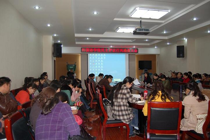 11月13日,外国语学院在文科综合楼311会议室召开2012-2013年民主评议行风工作动员大会。此次会议由外国语学院党委书记赵昉主持,全体教职工参加了本次会议。