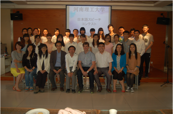 为了提高日语专业学生学习日语的热情、锻炼日语口头表达能力 ,经过日语系全体师生一个多月的精心筹备,外国语学院日语系首届日语演讲比赛于2014年5月17日下午,在文综楼活动中心室302室举行。日语系主任段继绪老师以及张三妮老师、秦翠翠老师、赵茜老师、刘新萍老师与特邀外籍专家関根和枝先生,特邀留学生尤卡学长出席了本次比赛并担任比赛评委。