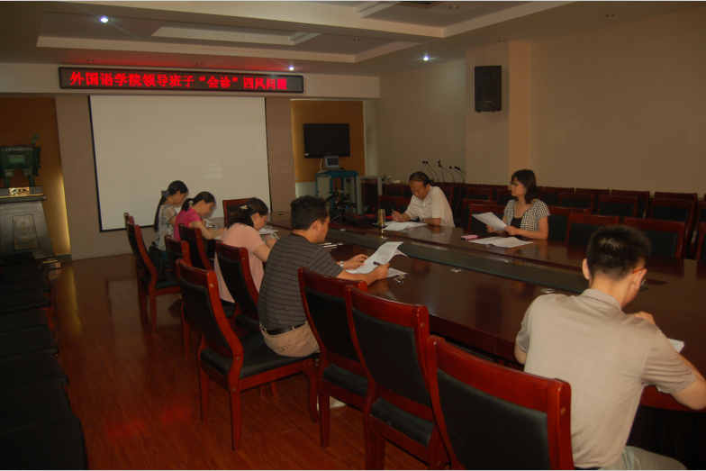 为了深入查摆梳理领导班子、领导干部“四风”方面的突出问题以及关系师生的切身利益的重要问题,6月12日上午,外国语学院处级领导干部在文综楼311召开“会诊”四风问题的专题会议。会议由学院党委书记赵昉主持。