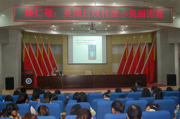 为丰富师生文化生活,开阔师生文学视野。4月20日晚,应外国语学院之邀,厦门大学杨仁敬教授莅临我校,在圆形报告厅作了一场题为“美国后现代派小说面面观”的学术报告会,我校相关专业师生百余人聆听了此次报告会。