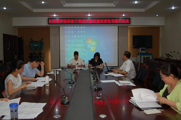 5月19日和22日在文综楼311室,外国语学院党委分别举行了领导班子和科级干部党风廉政建设责任书签订仪式,学院党委书记赵昉和院长赵增虎与班子副职、班子副职与所属各科、系(室)负责人共同签订了2015年度党风廉政建设目标责任书,以“军令状”形式把“一岗双责”的要求落实到每个班子成员和科、系(室)负责人身上。