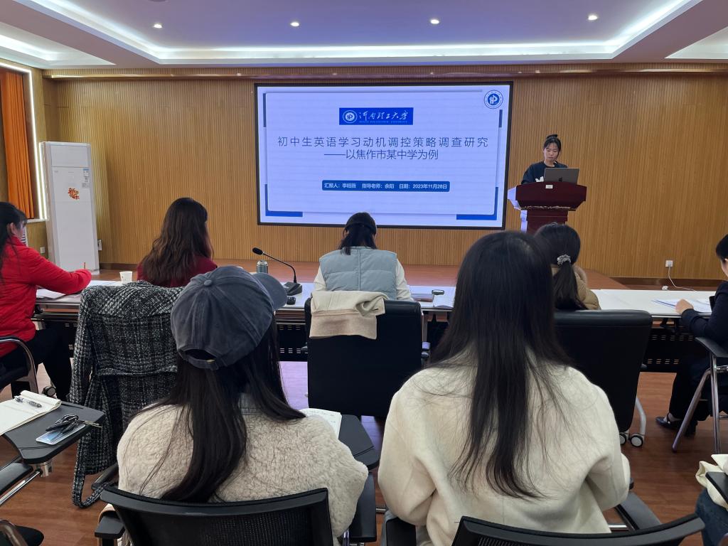 为确保学科教学(英语)专业研究生学位论文指导工作顺利开展,11月28日至29日,我院在文综楼302会议室举行了2022级学科教学(英语)硕士学位论文开题报告会。本次报告会邀请河南大学教授关合凤、焦作市十一中学高级教师武冬霞、焦作市人民中学高级教师秦琳与部分外国语学院学科教学研究生导师担任评委,全体2023级学科教学(英语)硕士到场观摩学习。