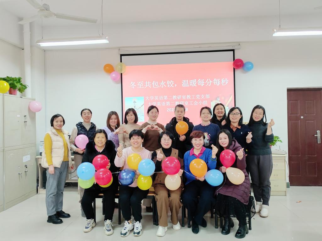 天时人事日相催,冬至阳生春又来,寒冬暖阳,为弘扬中华民族传统节日,促进教师之间的感情,12月18日下午,外国语学院大学英语第二教研室教工党支部联合第二工会小组邀请退休教师共同举办了一场别开生面的冬至主题活动——“冬至共包水饺,温暖每分每秒”。