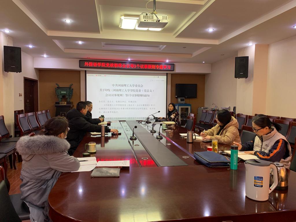 1月22日上午,我院党委在文综楼311会议室组织学院党政领导班子认真学习校党委下发的《河南理工大学学院党委(党总支)会议议事规则》等3个议事规则文件,党委书记许荣梅同志带领大家详细学习了文件内容。