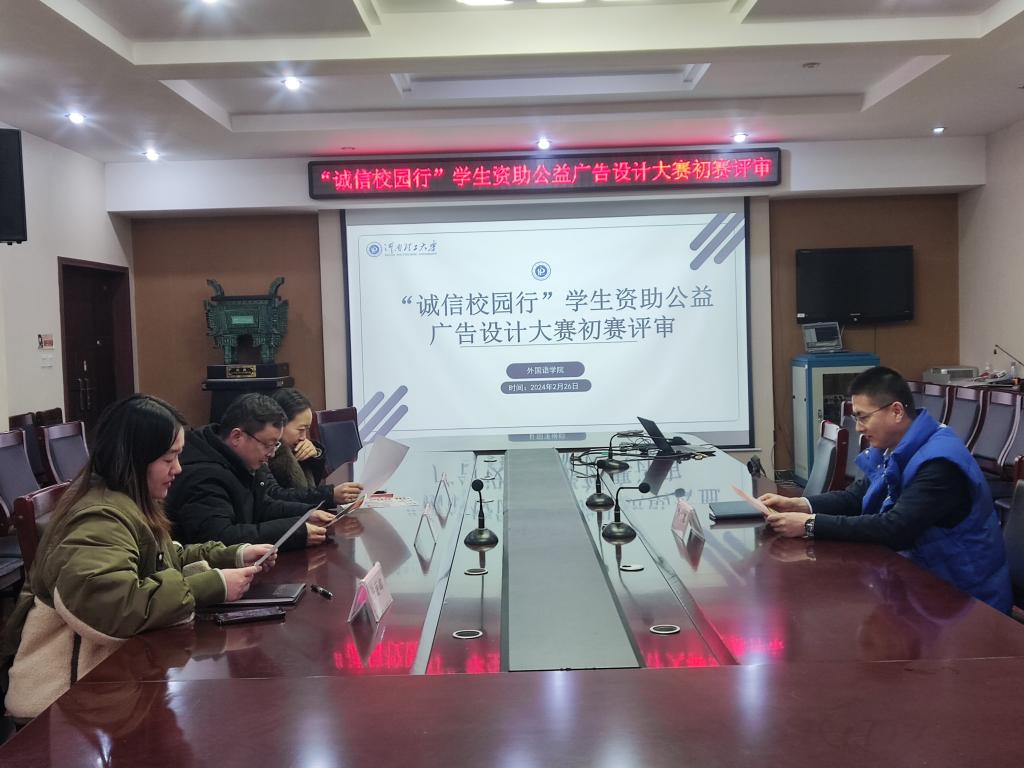 为帮助同学们树立诚信自强的品格,培养感恩奋进的精神,我院于2月26日下午在文综楼311开展诚信校园行公益广告设计大赛初赛评审活动,学院党委副书记何军、学工办主任尹祥、团委书记王雷霞、辅导员陈丽娜担任评委。