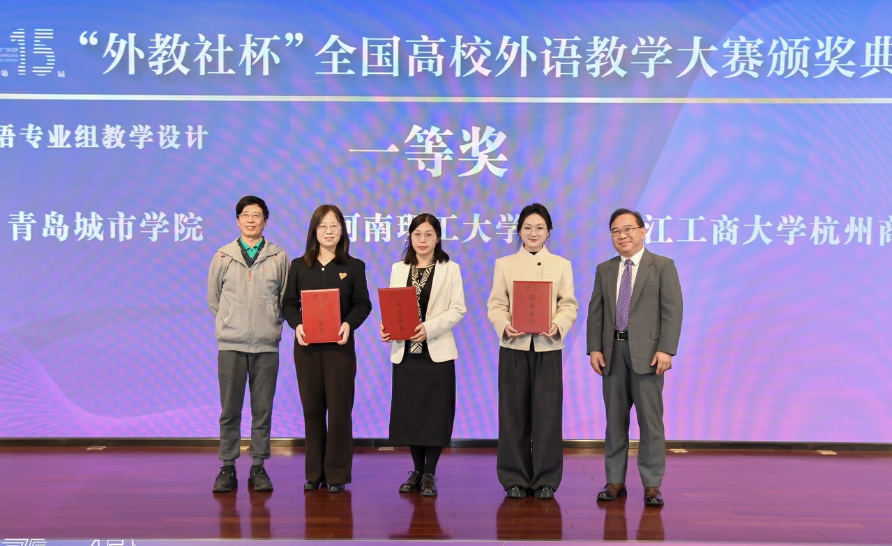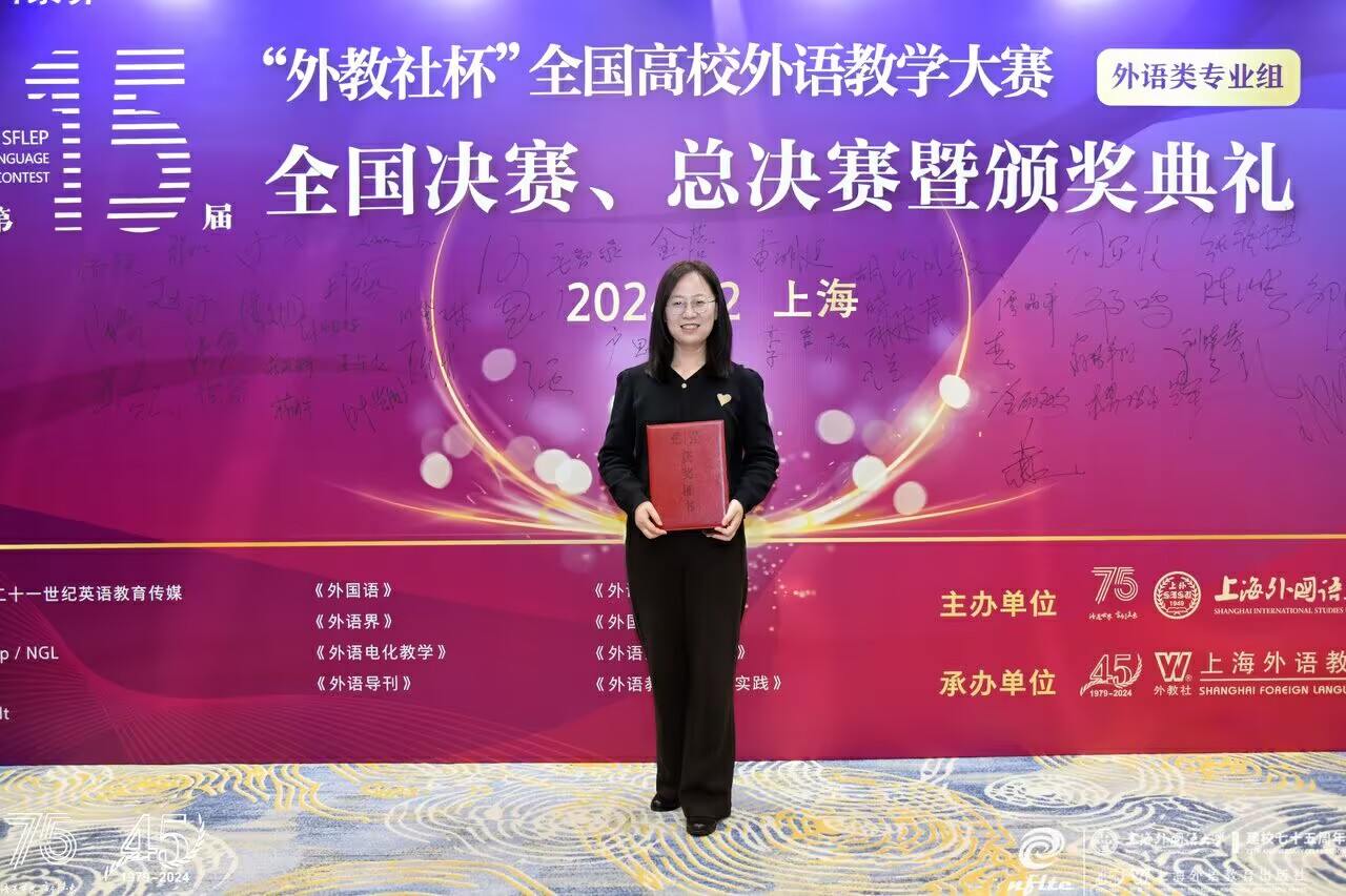 12月6-8日,由上海外国语大学主办、上海外语教育出版社承办的第十五届“外教社杯”全国高校外语教学大赛全国总决赛在上海成功举办。大赛分为英语专业组、商务英语专业组、翻译专业组和日语专业组四个组别,从全国30个省分赛区脱颖而出的79位特等奖获得者同台竞技,切磋“武”艺。我院教师薛晶晶喜获商务英语专业组三等奖,其团队提交的教学设计荣获一等奖,献礼115年校庆。