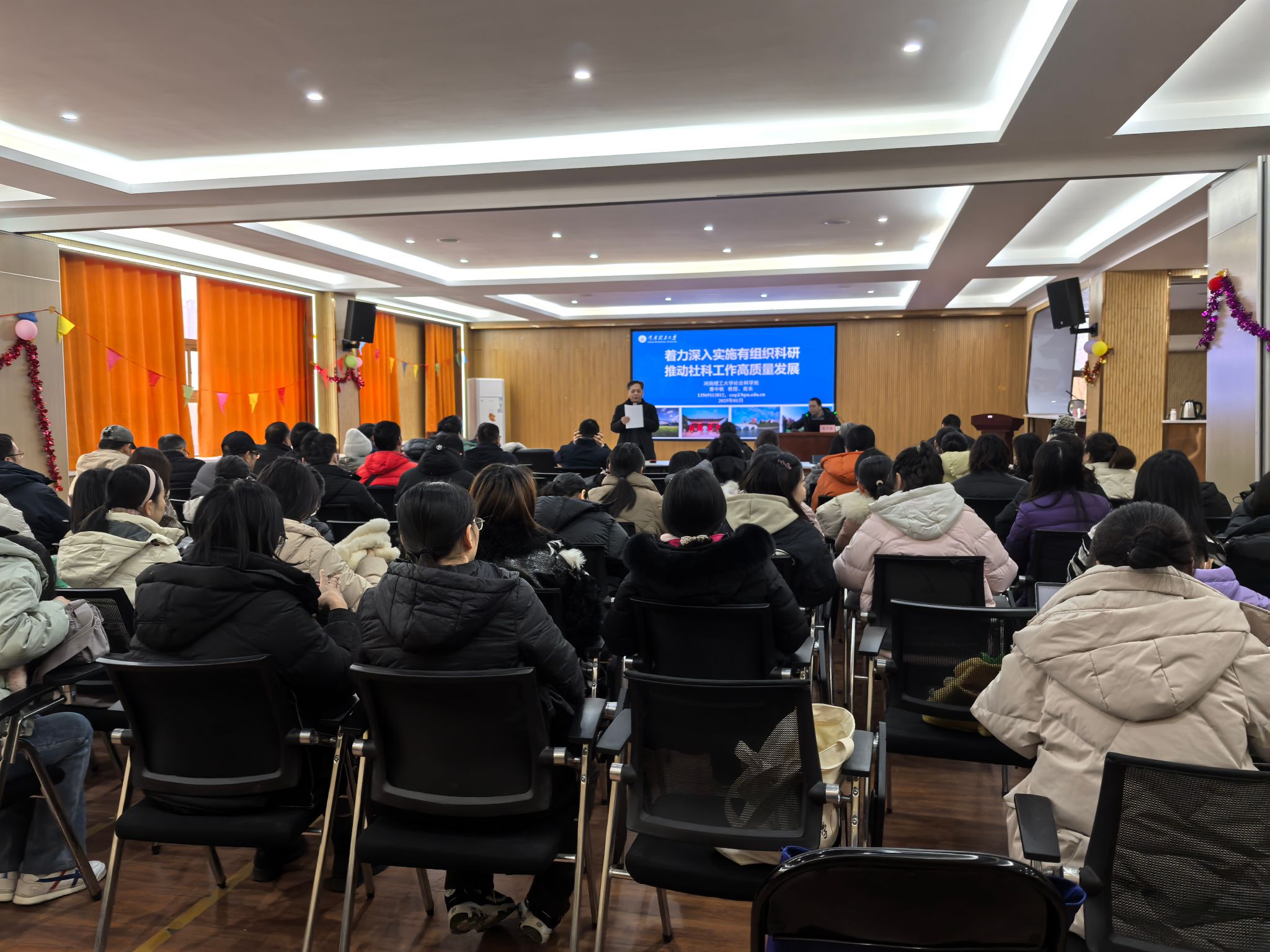 14日上午,社科处处长曹中秋围绕《着力深入实践有组织科研,推动社科工作高质量发展》主题,展开了一场干货满满的专题讲座。曹处长对新时期哲学社会科学研究进行了全方位详细说明,深入解读了相关制度和规定,并着重指出了项目申报过程中的注意事项,为该院教职工下一步的项目申报工作奠定了坚实基础。随后,我院副院长吴敏带领全体教职工集中学习并深入解读了学校和学院的教学制度文件,确保每位教师都能准确把握教学规范,为教学工作做好充分准备。