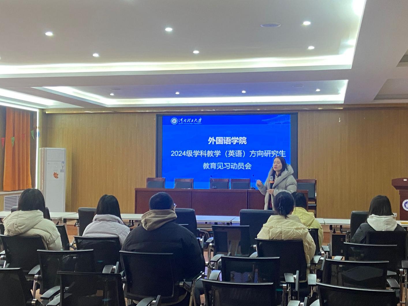 11月4日,我院在文综楼302教室召开2024级学科教学(英语)研究生教育见习动员会。会议由学院副院长吴敏主持,2024级学科教学(英语)全体研究生参加。