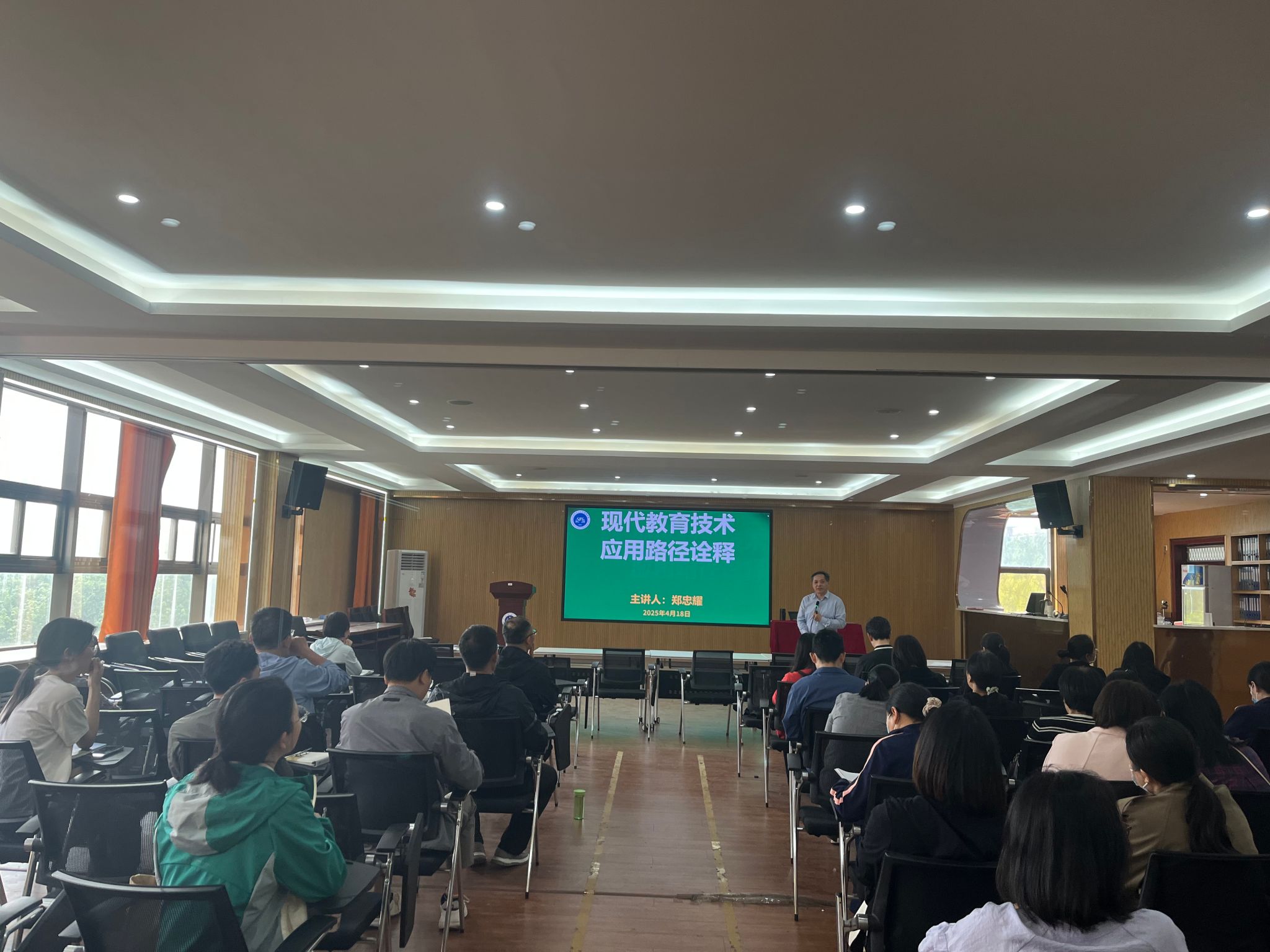 4月18日下午,我院副院长郑忠耀在文综楼302室作了题为“现代教育技术应用路径诠释”的讲座,学院百余名师生踊跃参加,现场气氛热烈而活跃。