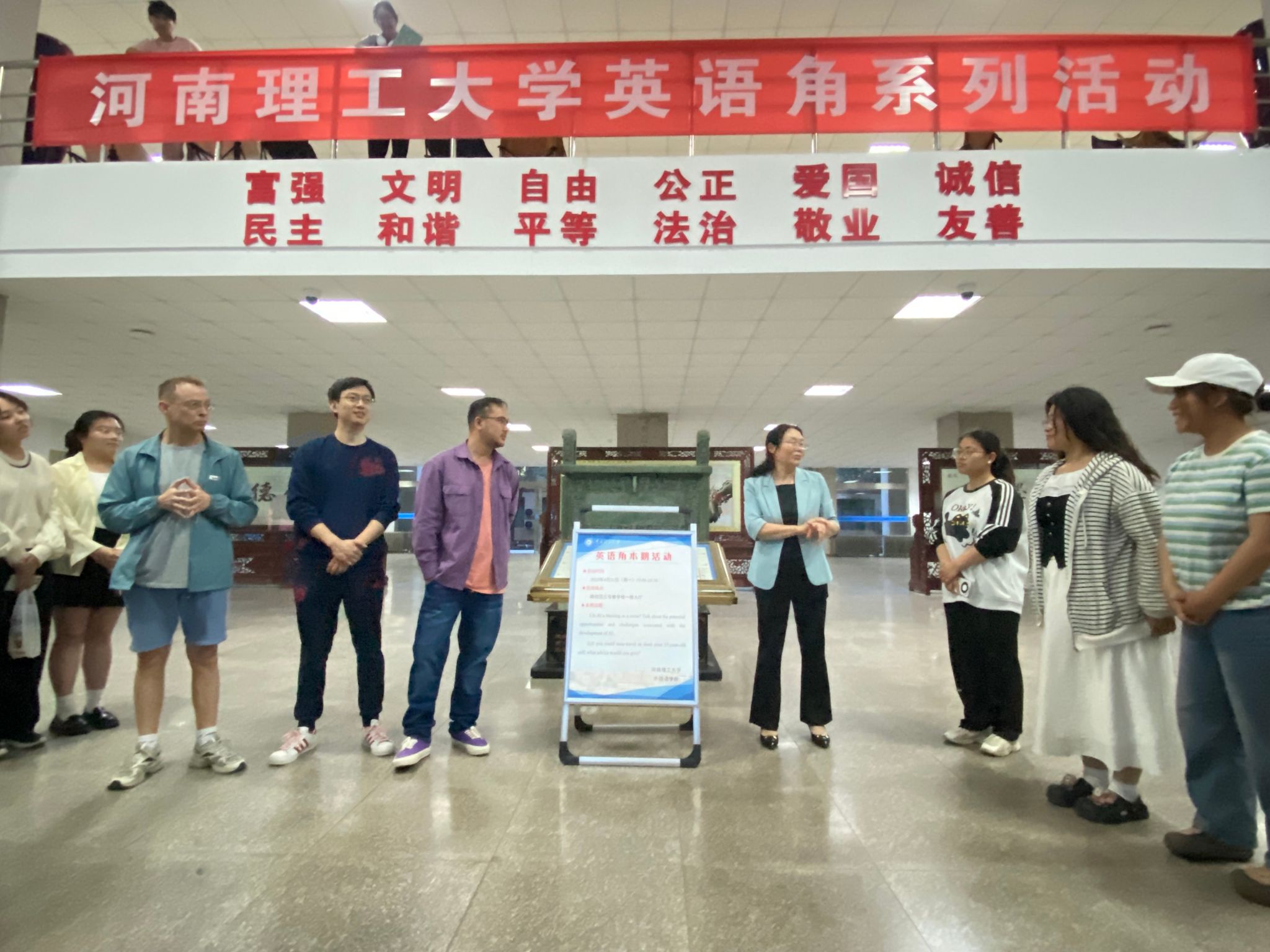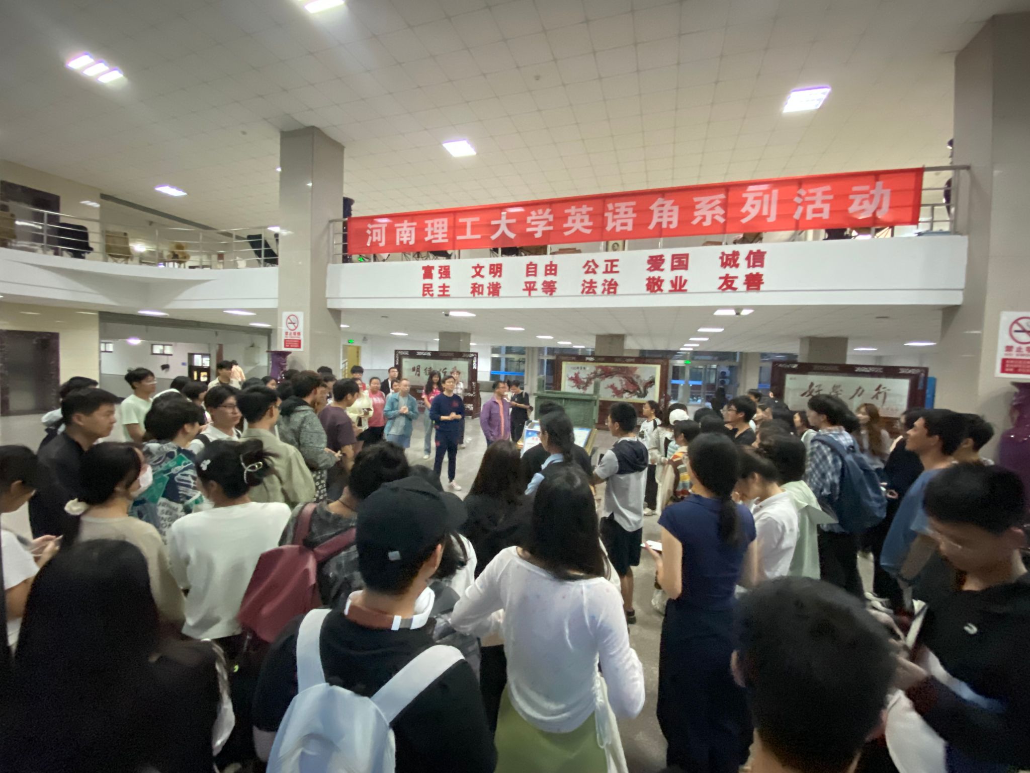 为积极营造校园英语学习氛围,切实提升学生英语口语交流能力,搭建起跨文化交流的优质平台,4月21日晚19:00-20:30,河南理工大学外国语学院于南校区三号教学楼一楼大厅,成功举办本学期第一期英语角活动。此次活动邀请了Benjamin Charles Evans与Marc Chris Layson两位外教参与,我院院长李惠敏,副院长郑忠耀莅临指导活动。