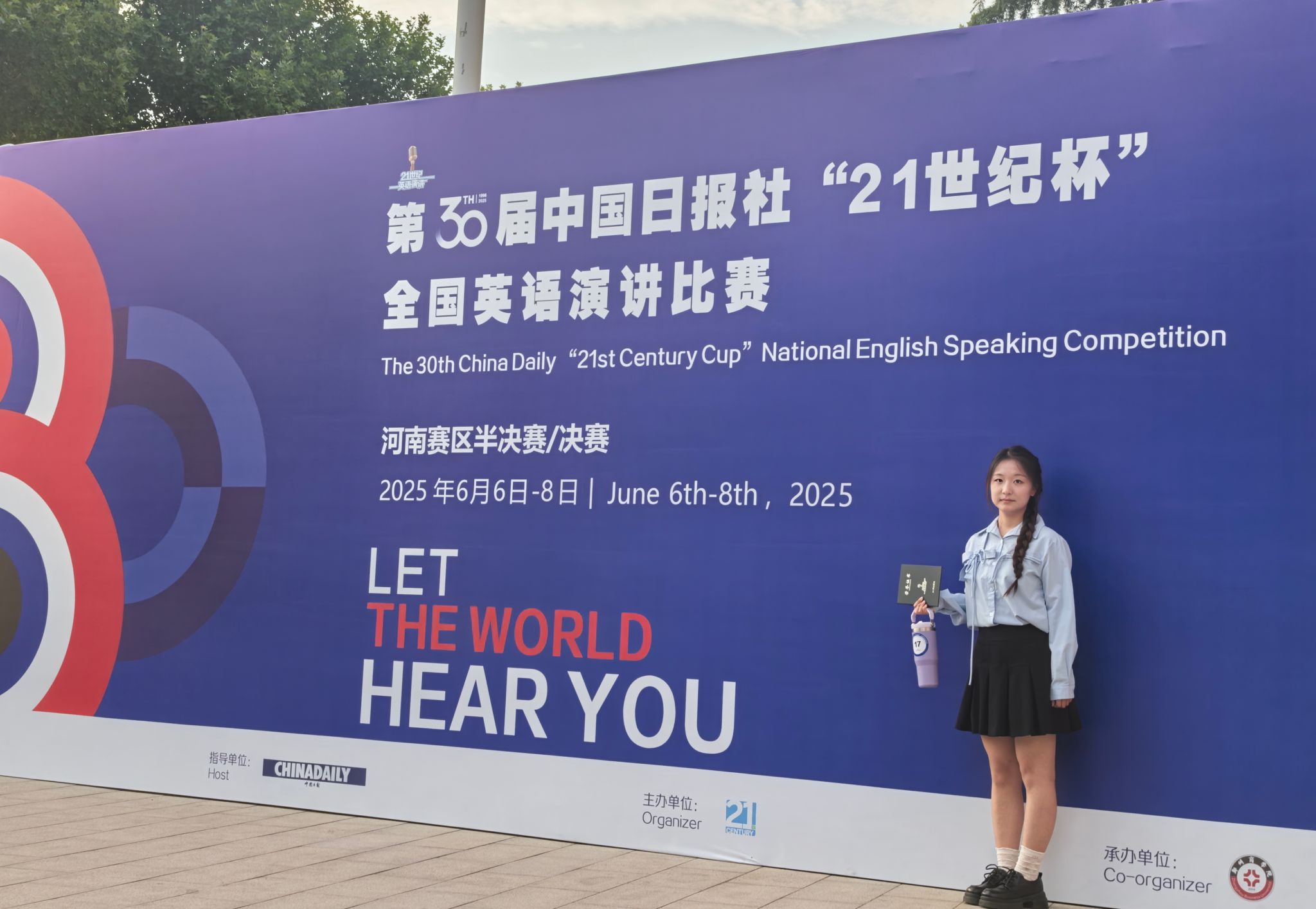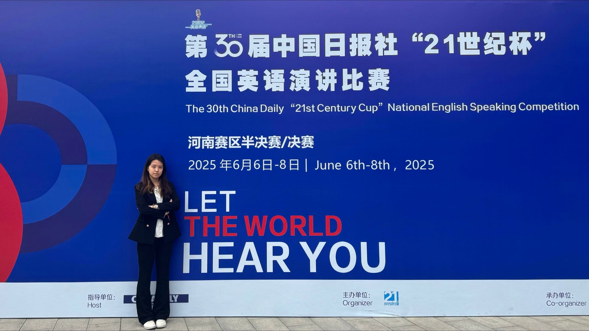 “21世纪杯”全国英语演讲比赛由中国日报社主办,是全国最具影响力的青少年英语赛事之一,本届河南赛区吸引了全省一百多所高校、几千名选手参赛,经过初赛、复赛层层选拔,2024级大学英语拔尖班2名学生邵静怡与赵可欣凭借出色表现成功入围本次决赛。
