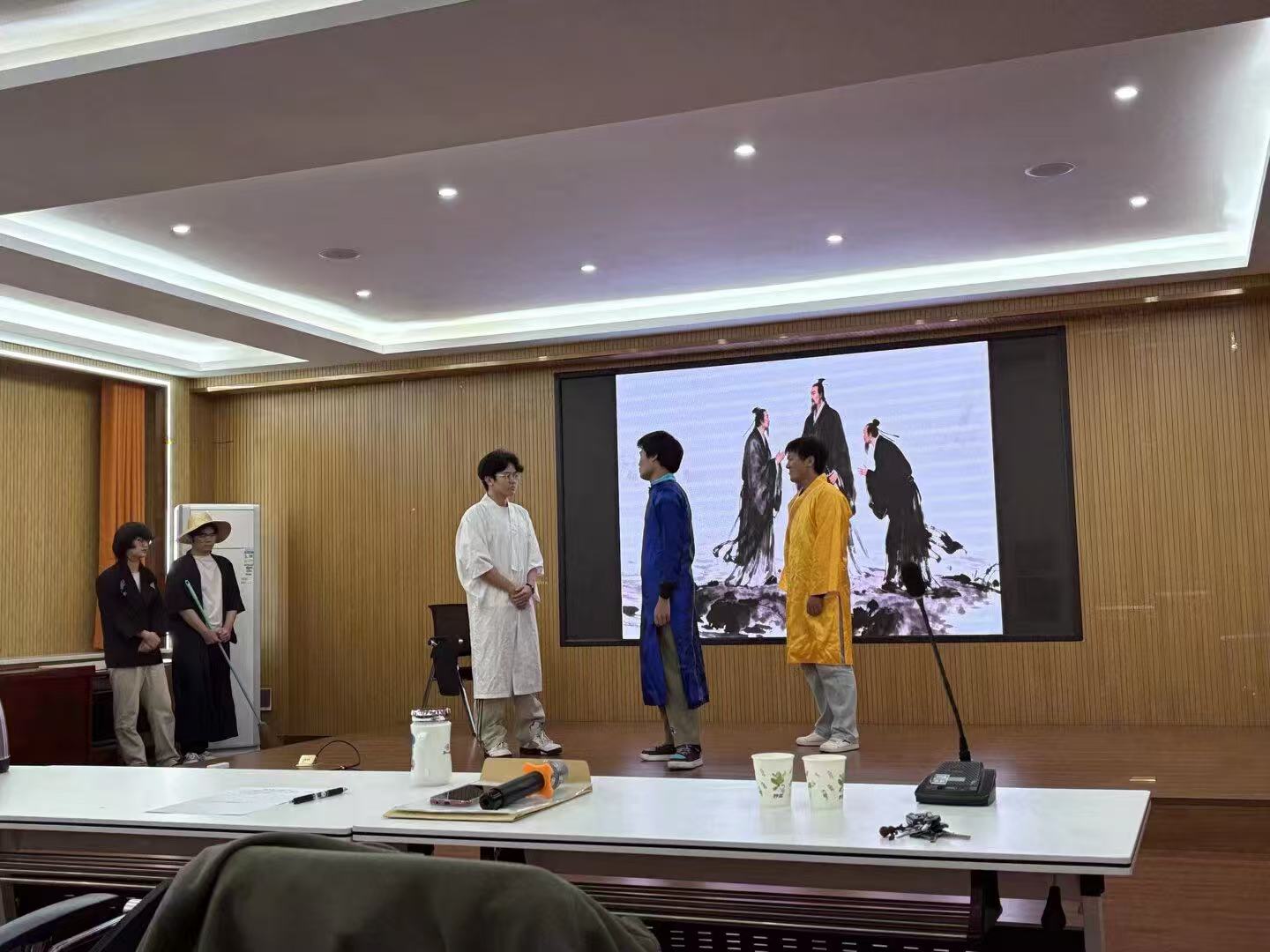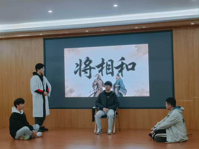 本次演出将《荆轲刺秦》《屈原投江》《愚公移山》《将相和》中的传统中国经典故事改编为日语话剧,以沉浸式表演搭建跨文化交流桥梁,让中国古典魅力在日语演绎中焕发新生。开场的《荆轲刺秦》便点燃全场氛围,演员们以铿锵有力的日语台词、张力十足的肢体动作,还原“风萧萧兮易水寒,壮士一去兮不复还”的悲壮场景,精准刻画荆轲的决绝与豪迈、燕太子丹的恳切与不舍,将古代义士的忠义风骨展现得淋漓尽致,台下掌声雷动。《屈原投江》演员身着古雅传统服饰,以饱含深情的日语台词抒发屈原“路漫漫其修远兮,吾将上下而求索”的爱国情怀与忧国忧民的赤诚之心,搭配苍凉悠远的背景音乐与简洁写意的舞台布景,让观众深切体悟文人墨客的家国大义。《愚公移山》的表演中,演员们切换至质朴沉稳的演绎风格,以平实的日语对白再现愚公驳斥智叟、带领家人叩石垦壤的执着画面,一举一动传递出“坚持不懈、人定胜天”的信念,让观众感受到平凡人身上的非凡力量。最后出场的《将相和》通过“完璧归赵”“负荆请罪”两个核心片段串联,流畅的日语对白将蔺相如的机智果敢、廉颇的坦荡磊落刻画得入木三分,生动演绎出“以和为贵、家国为先”的处世智慧,引发在场师生的强烈共鸣。师生感慨:“用日语看中华英雄故事既新颖又震撼,既提升了日语听力理解能力,又能更加深刻体会到传统文化的精神力量”“这种形式让经典不再遥远,为跨文化学习提供了生动范本”。