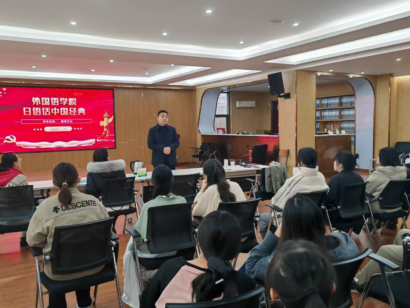 11月7日下午,我院第十一届日语话中国经典大赛在文综楼302多功能室精彩上演。本次活动由我院日语系主办,日语系老师和日语2401班同学参加并观看演出。