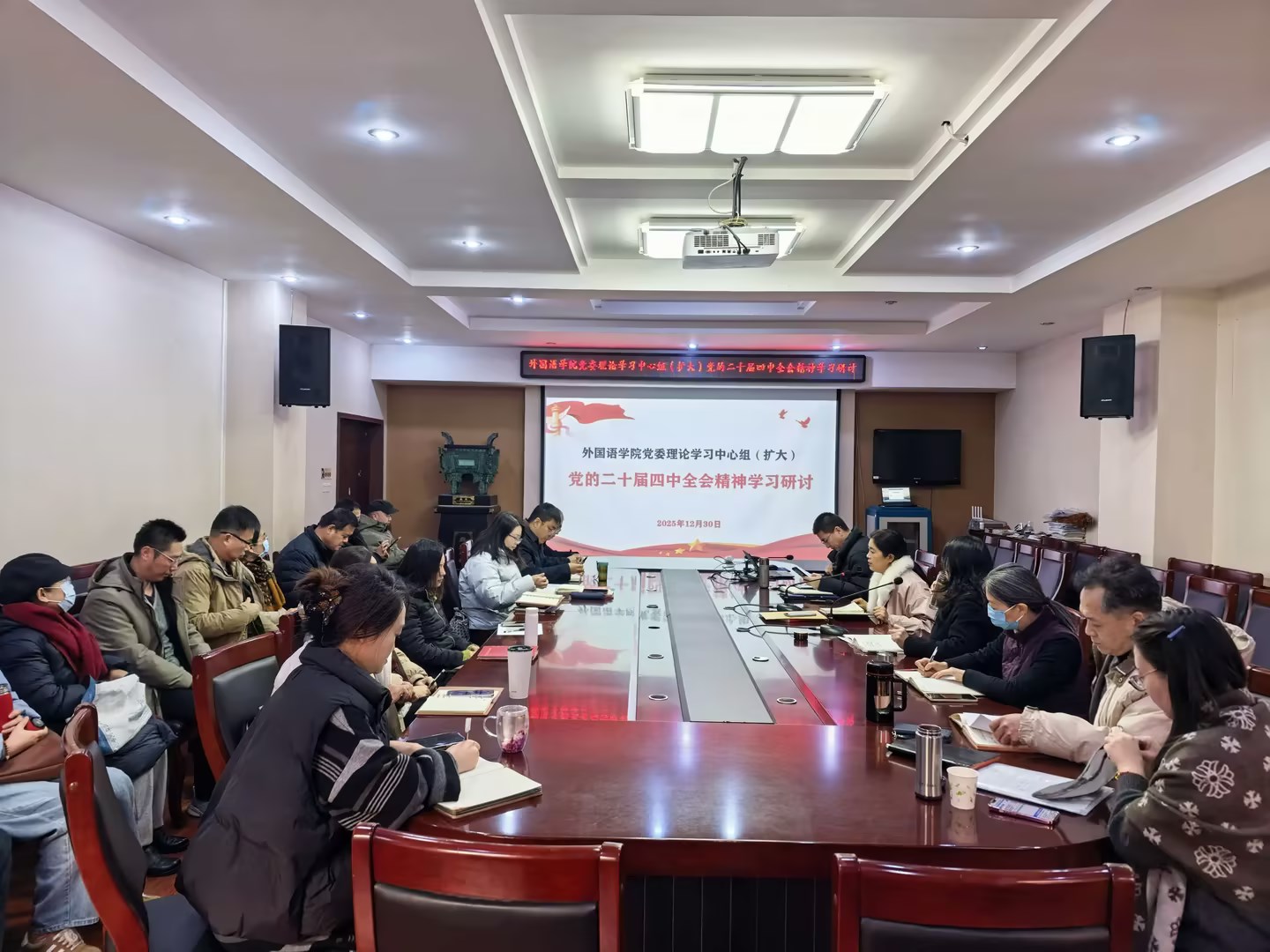 12月30日,我院在文综楼311会议室召开党委理论学习中心组集体(扩大)学习会,围绕学习贯彻党的二十届四中全会精神进行专题研讨交流,科学谋划学院“十五五”时期事业高质量发展。全体院领导、党委委员,科级干部、支部书记、系(教研室、中心)负责人,党外知识分子、民主党派人士及老中青教师代表等参加。会议由我院党委书记许荣梅主持。
