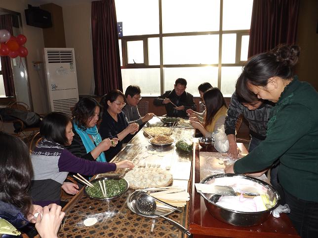 活动开始就得到了小组成员的大力支持和积极配合参与,这些平日里辛勤工作的老师,此时此刻,大显身手,开始展示各自的拿手项目,和面、擀皮、包饺子等等,忙的不亦乐乎。陆陆续续,形态各异的饺子呈现在面前,不同的地方,不同的风俗习惯,尽显出来。品味鲜美、不同口味的饺子,体验我国传统文化习俗的魅力,同时也享受到了同事之间的关爱和温暖,从饺子中体味到了别样的滋味。