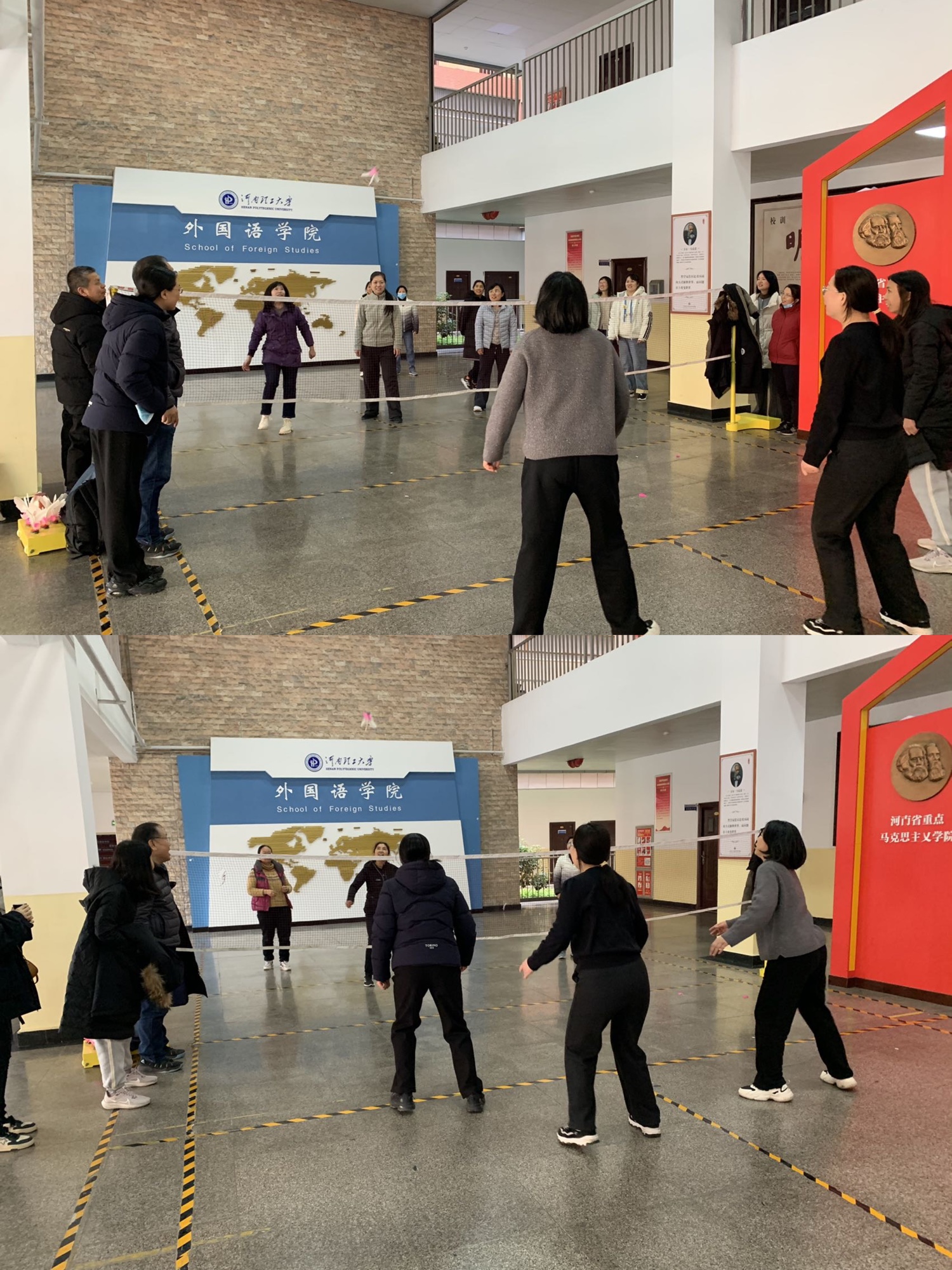 本次比赛采用循环赛制,每场比赛三局两胜,每局15分,比赛现场气氛热烈,精彩瞬间不断。各队迅速进入状态,队员们精神饱满,斗志昂扬。随着裁判一声哨响,比赛正式开始。队员们身姿矫健,动作敏捷,巧妙运用脚、腿、头、肩等部位击打毽球,展现高超技巧与默契配合。她们时而轻巧地挑球,时而用力地扣杀,时而巧妙地防守,每一个动作都充满了力量与美感,引得现场观众阵阵喝彩。经过激烈角逐,学院机关及日语系代表队凭借出色发挥和默契配合全胜获一等奖,英语系代表队获二等奖,大学外语第一、二教研室获三等奖。