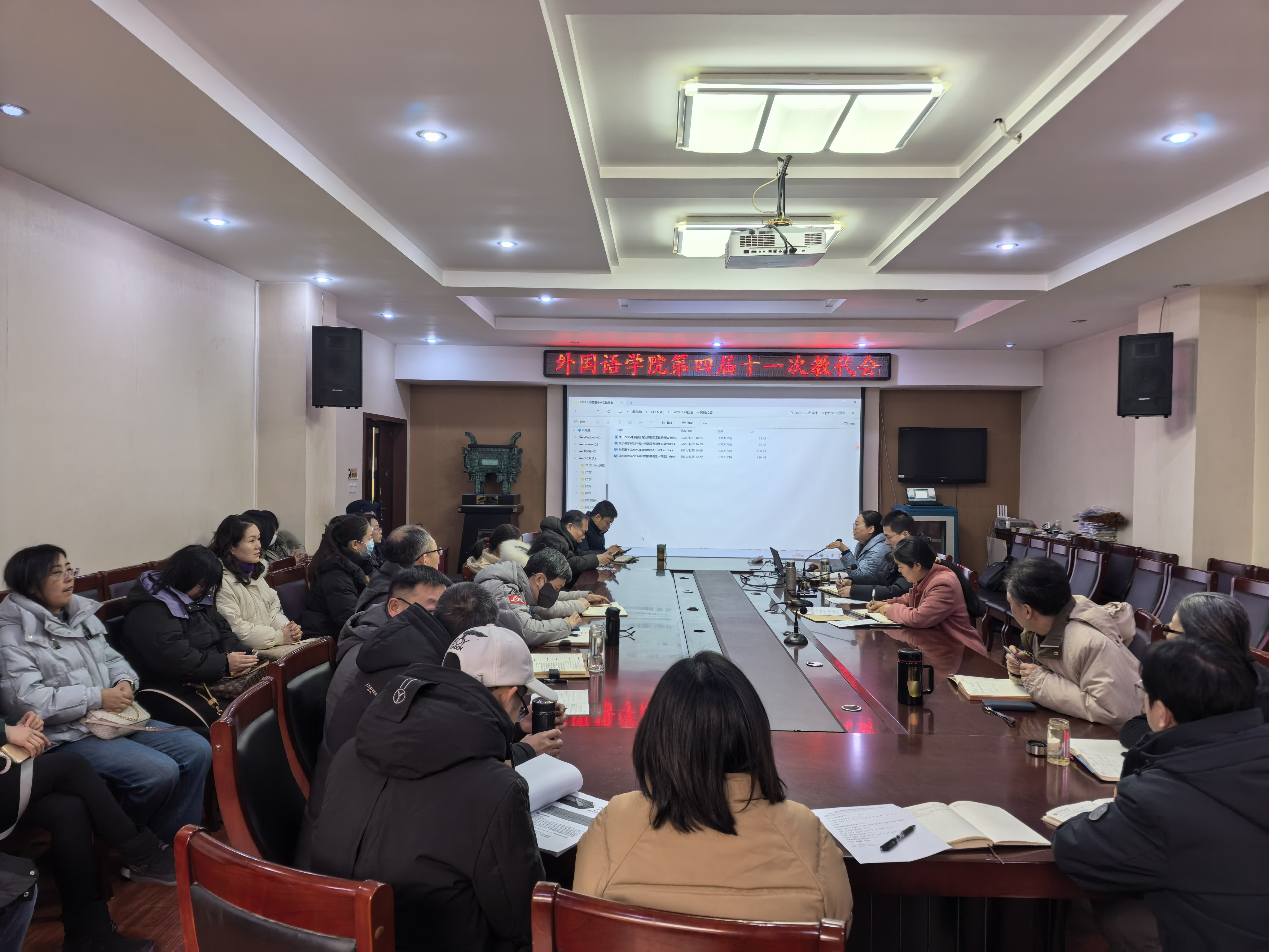 1月26日,我院在文综楼311会议室召开第四届教职工代表大会第十一次会议。学院教代会代表及学院领导参会,院工会主席何军主持会议。