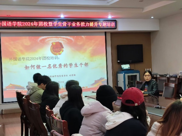 2024年11月19日下午,我院于文综楼311成功举办2024年团校暨学生骨干业务能力提升专题培训。本次活动由我院党委书记许荣梅主讲,学院全体团委委员、学生会主席团成员和青协主要负责人等40余人参加培训。